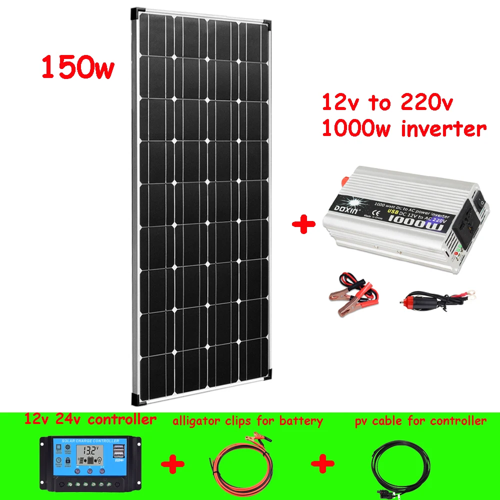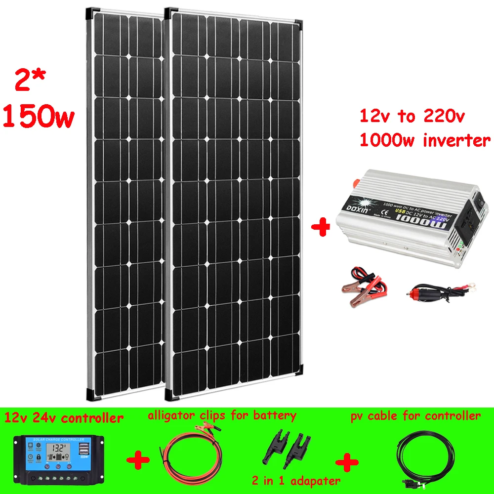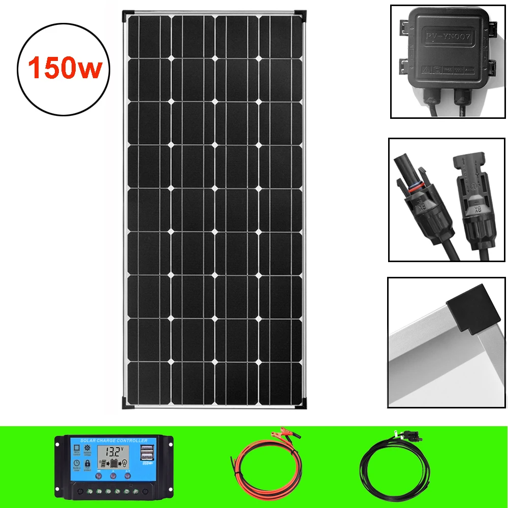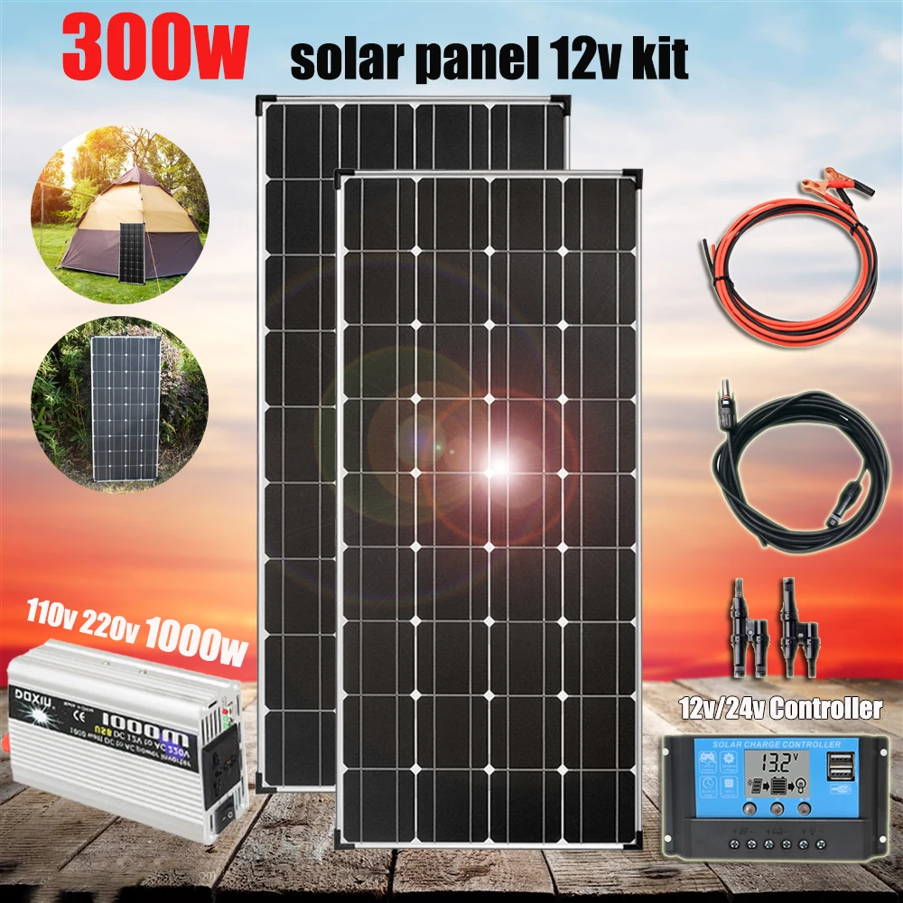 втсолнечная панель батарея Комплект солнечных панелей 300 вт 150 вт полный комплект 12 V 24 в монокристаллические солнечные батареи зарядное устройство для автомобильной лодки RV кемпер на крыше 1000 вт инвертор