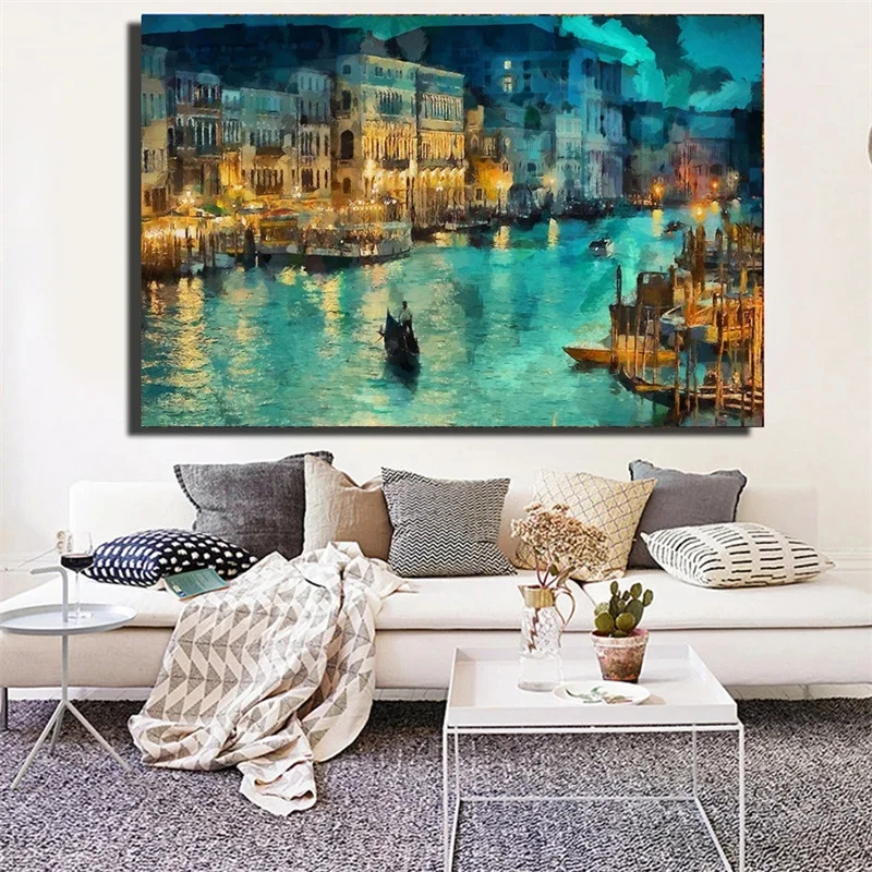 Абстрактное искусство, водный город, Венеция, картина маслом, холст, картины для гостиной, украшение, настенное искусство, спальня, домашний декор, плакат