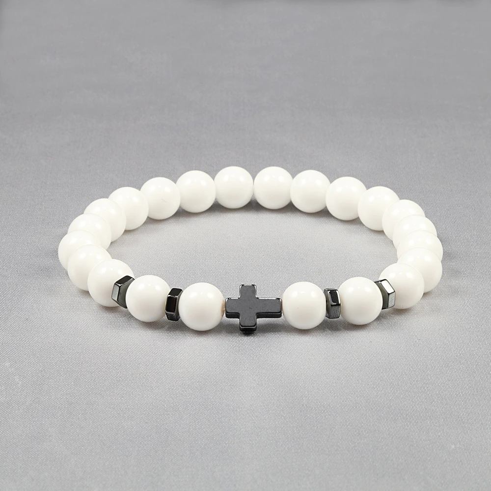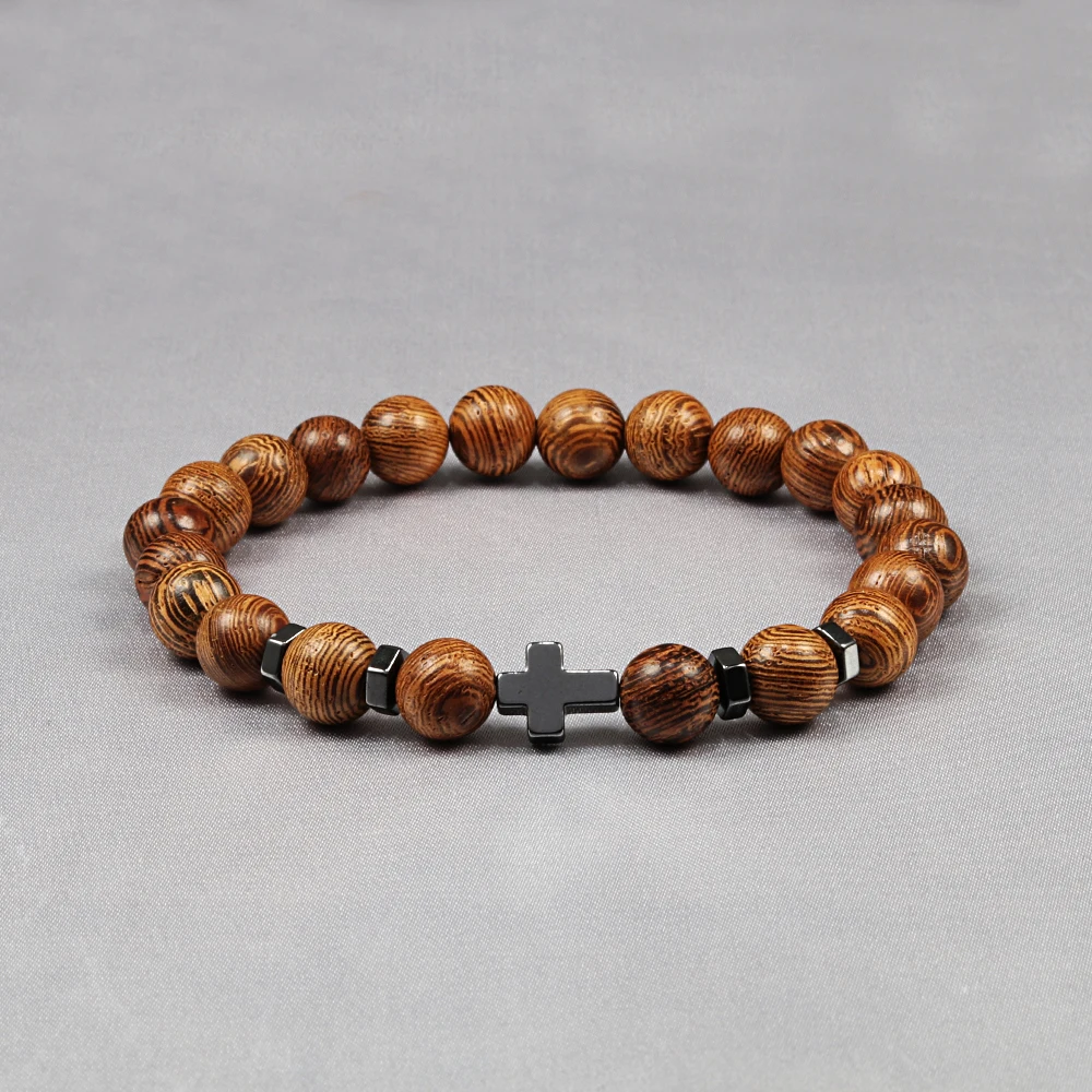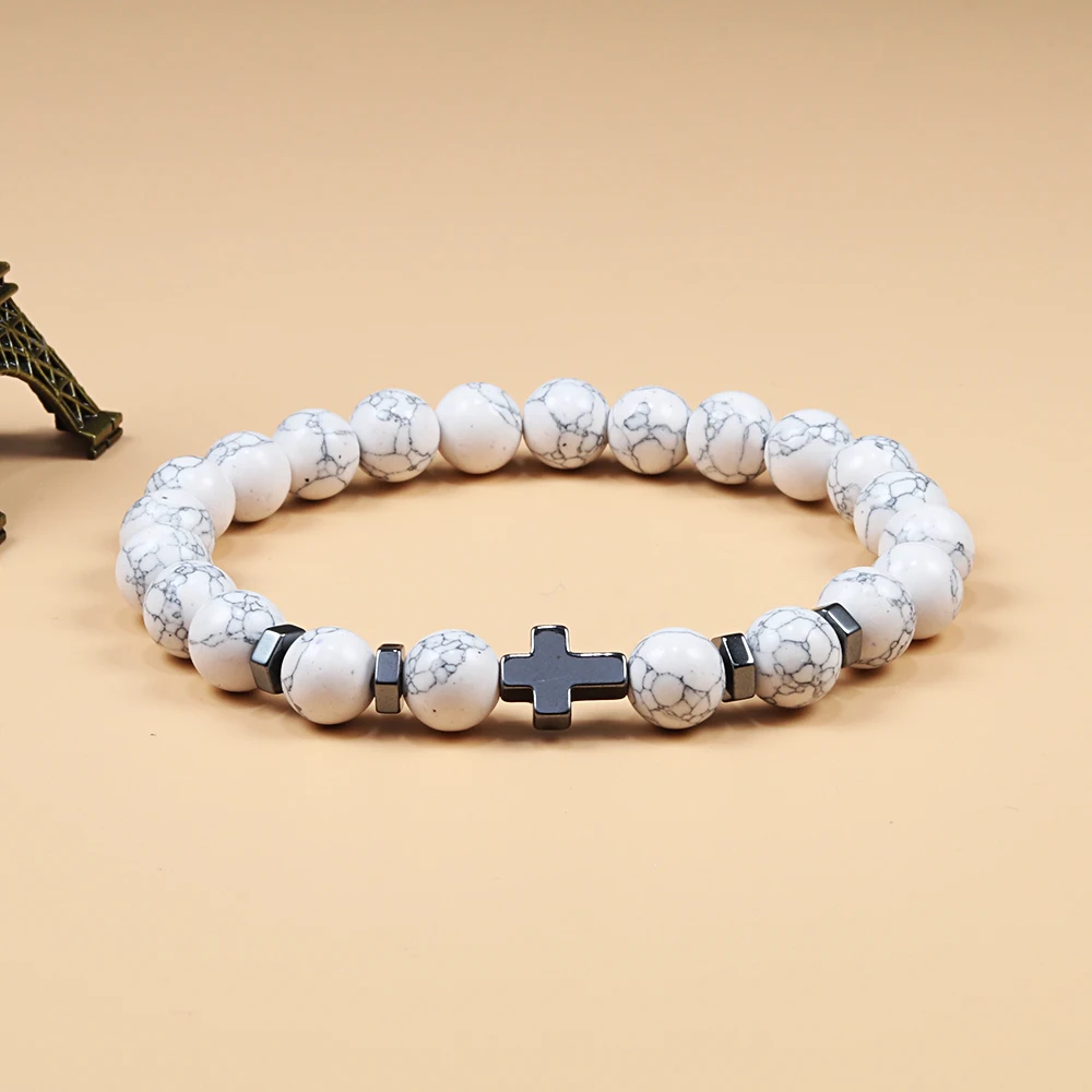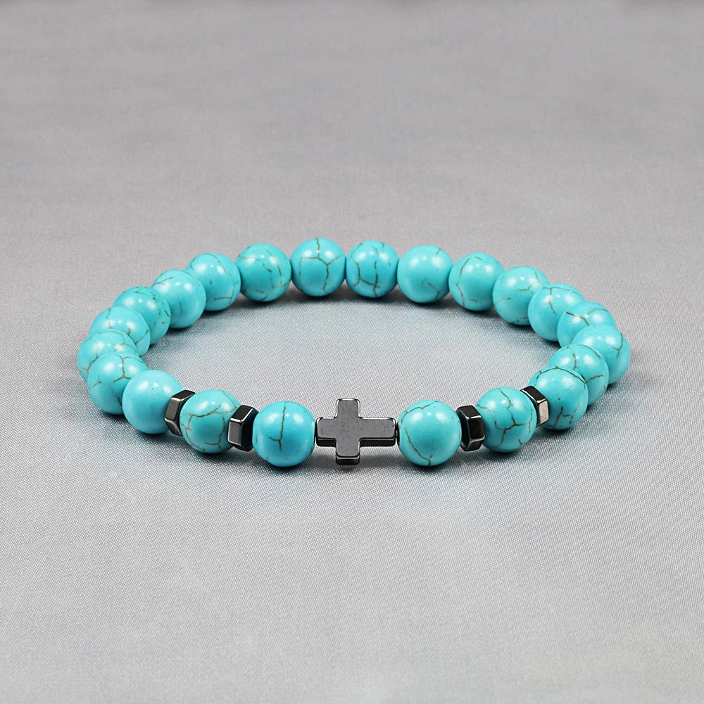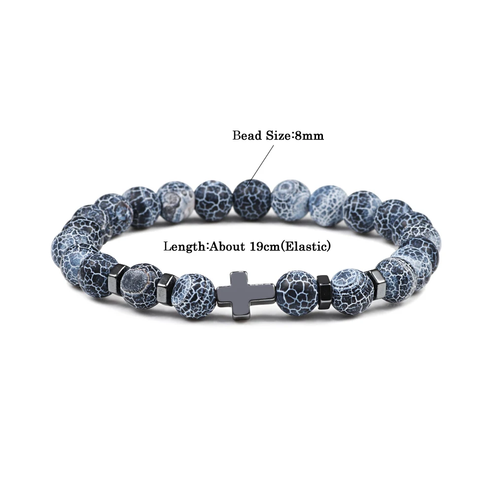 Модные мужские гематитовые браслеты с крестом, 8 мм, натуральный тигровый глаз, черный камень лавы, Шарм для женщин, Йога, молитва, ювелирные изделия, подарки, Homme браслеты