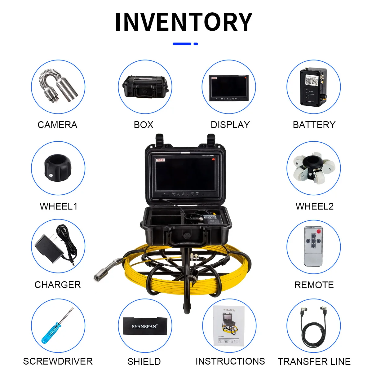 Все-в-одном SYANSPAN 9 "Беспроводной Wi-Fi 20 Вт, 30 Вт, 50 м кабель из стекловолокна канализационного стока видео CCTV камера для осмотра труб Камера трубопровода промышленный эндоскоп поддержка 3 Android или IOS устройствами одновременно