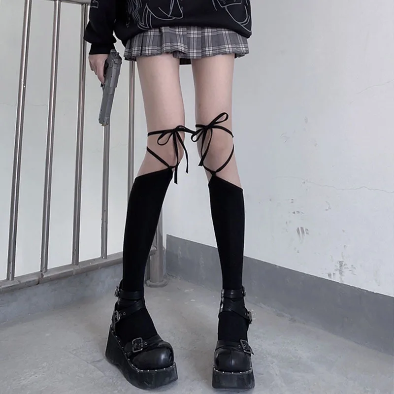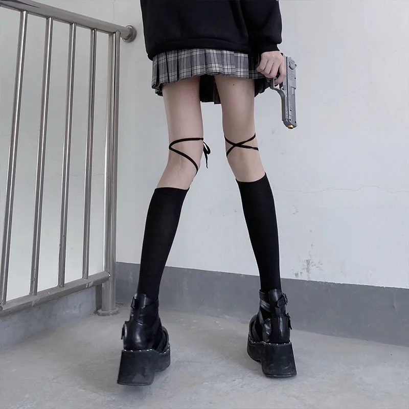 Японские высокие носки до колена с перекрестными ремешками женские чулки Лолита кавайные хлопковые нижние носки до бедра Harajuku носки