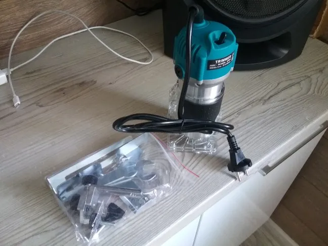 Были опасения... Но, фрезер оказался не только рабочим, но и тихим. Брали его из-за возможности использовать фрезы на 8. В магазинах подобные фрезеры все на 6... Вот и соблазнились, купили этот. Всё хорошо, комплект полный: 2 фрезы - на 6 и на 8, различные упоры, ключ, пластиковая накладка для отвода стружки, запасные щетки.... В общем, работает, фрезерит) Есть один нюанс - очень плохо видно шкалу, практически не видно (она в виде рисок на серебристом корпусе).