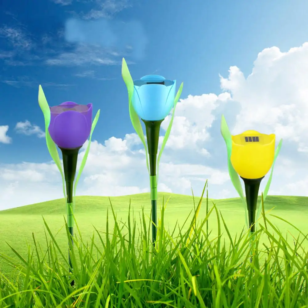 Фонарь с солнечной батареей, уличная Светодиодная лампа в виде цветка тюльпана, многоцветное водонепроницаемое садовое украшение для двора, дорожек, газона, внутреннего дворика, ландшафта