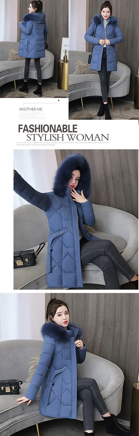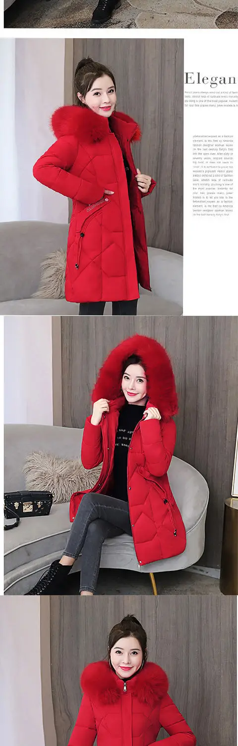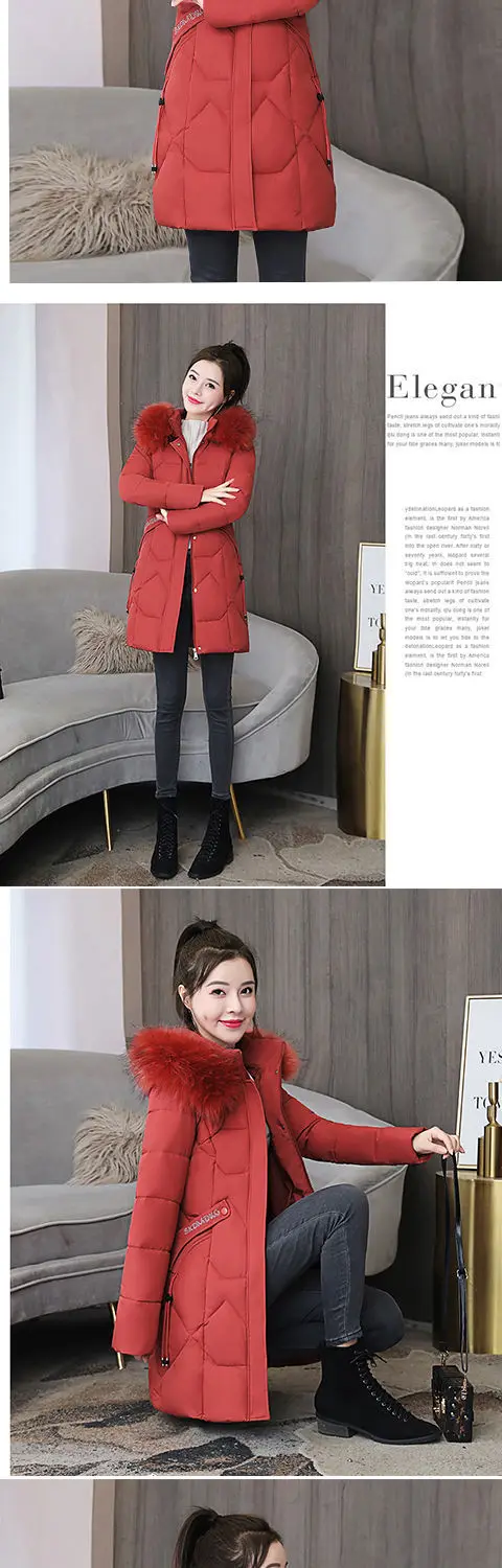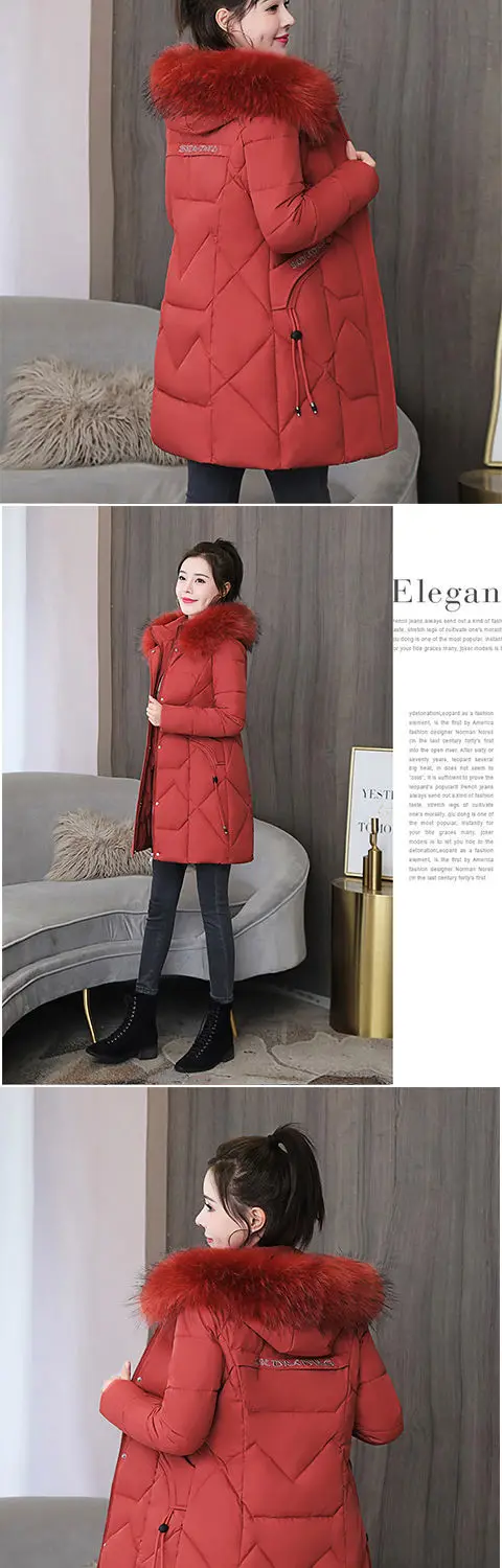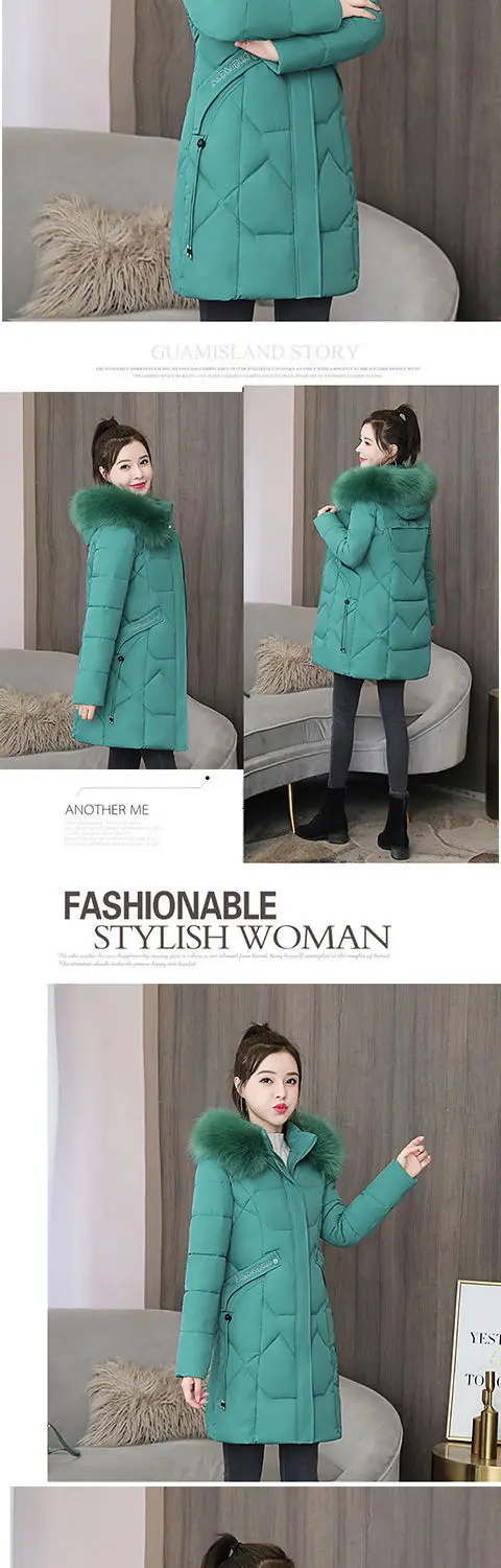 Женская зимняя куртка средней длины из полиэстера, новинка 2021, модная утепленная Повседневная парка с капюшоном и большим меховым воротником из хлопка