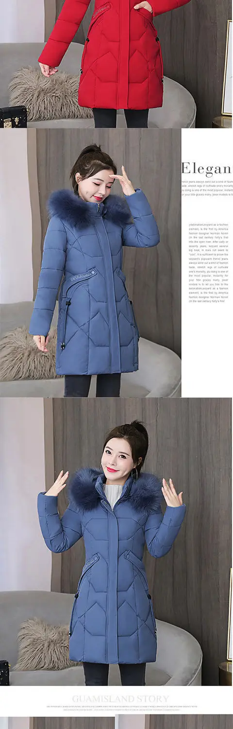 Женская куртка с меховым воротником, теплая длинная парка с хлопков...