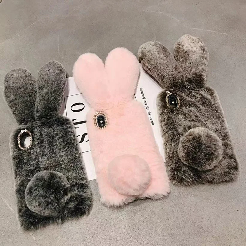 Теплый чехол из кроличьего меха для iPhone 7 8 Plus X XS Max XR Sam...