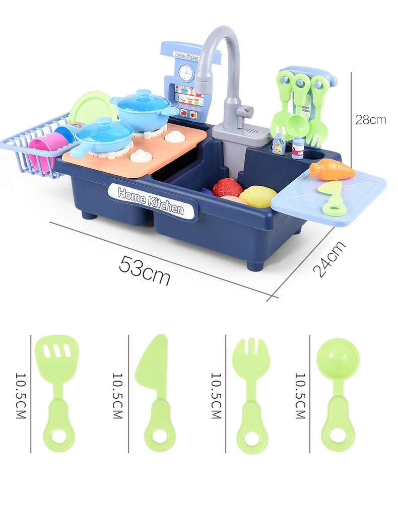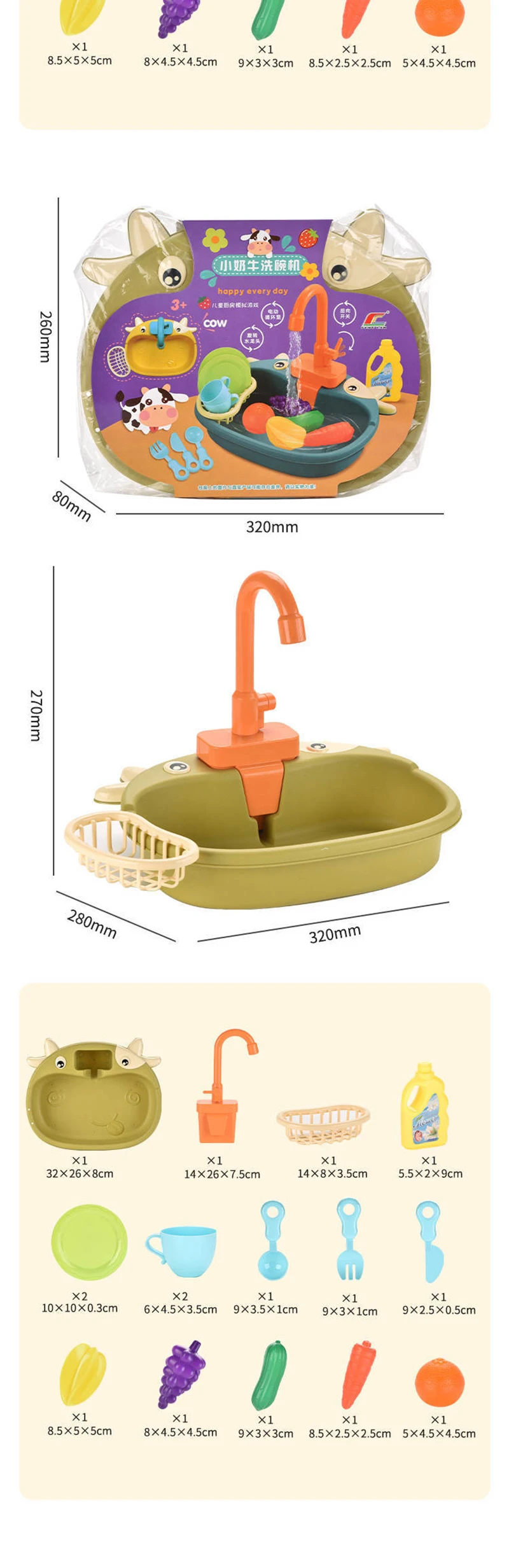Тип товара: детский набор кухонных игрушекМатериал: ПП + АБСАккумулятор: 2*5AA батареи (не входят в комплект)Лучшее для детейЭтот набор раковины может помочь вашему ребенку развить способность руки-на, зрение, сцепление и интерес. Этот продукт лучше всего подходит для детей.Развивайте практическую способностьРоскошная посудомоечная машина включает в себя все инструменты, необходимые для мытья посуды и ручной стирки. Цель заключается в том, чтобы научить вашего ребенка мыть блюда и развивать свои способности.Ролевые игрыЭтот продукт может помочь узнать больше о чистоте, улучшить навыки решения проблем и развить эмоциональные и социальные навыки.Кухонная раковинаПоместите две батареи 5AA (не входят в комплект) в отсек для батарей электрического крана, а затем установите кран в раковину, заполненную водой, и воду можно циркулировать, вращая выключатель.Высокая степень моделированияКухонная утварь, овощи, фрукты и т. д. имеют высокую степень моделирования, которая может стимулировать интерес детей и углубить их воспоминания во время игры.