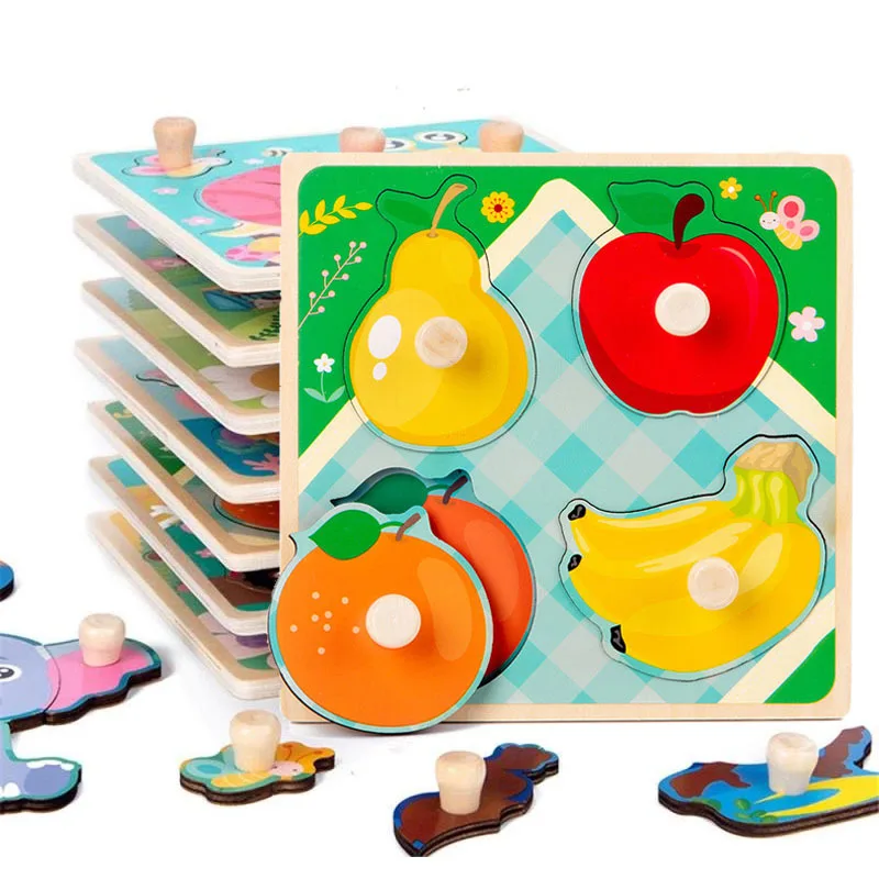 Детские игрушки, 3D деревянные головоломки, Обучающие Мультяшные животные, раннее обучение, головоломки, игра для детей, игрушки