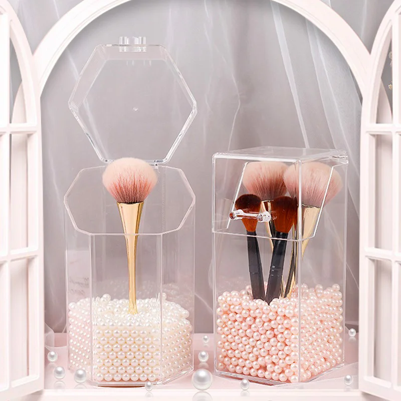 Жемчужный держатель для косметических кистей, прозрачный акриловый ...