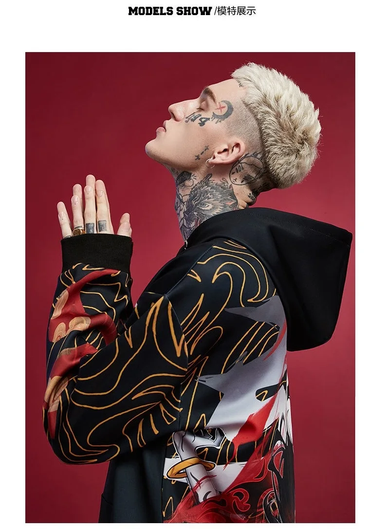 Мужская толстовка с капюшоном, в стиле Харадзюку, в стиле панк, свободного покроя, в стиле хип-хоп, осень-весна, размера плюс