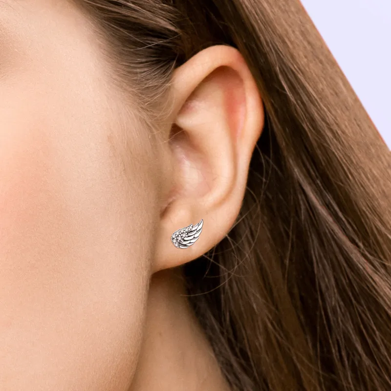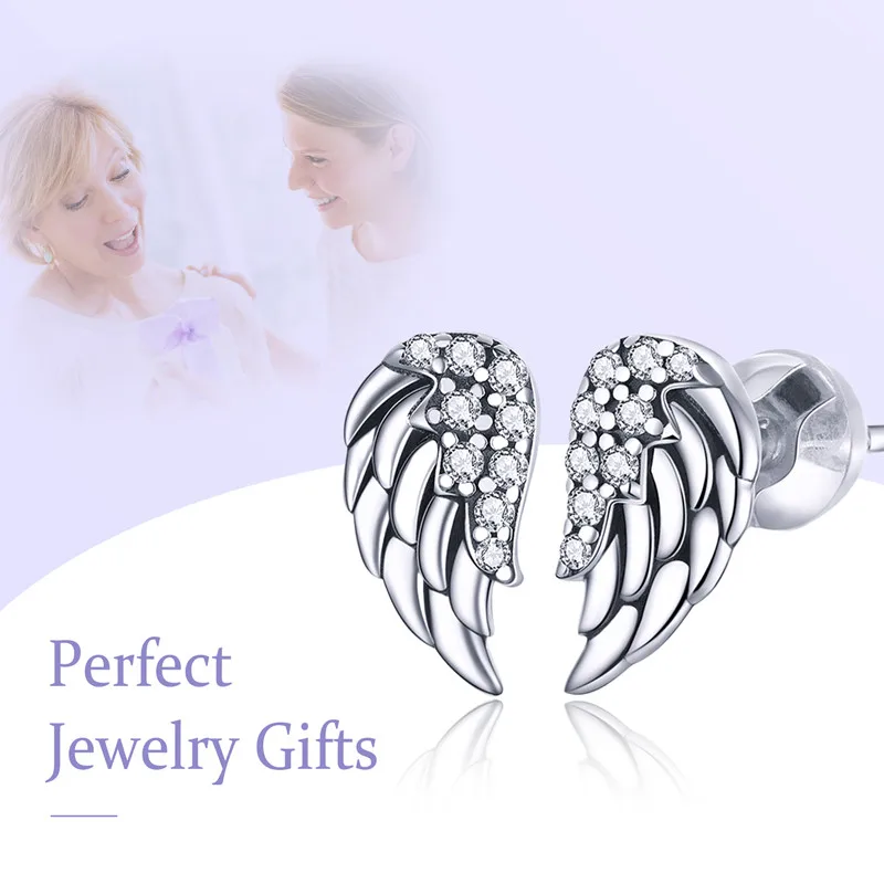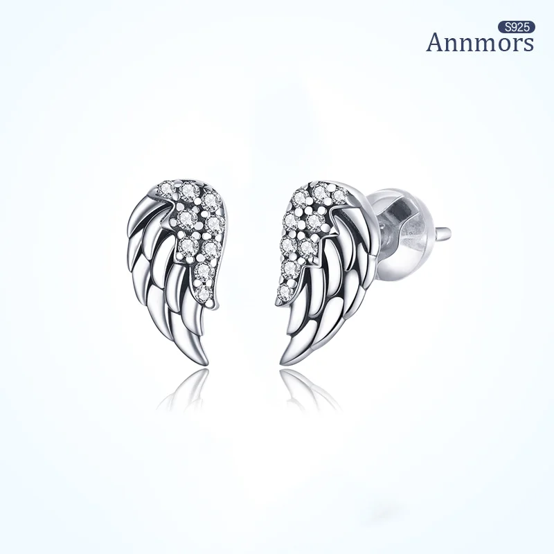 Винтажные серьги-гвоздики с крыльями ангела посеребренные оригинальные серьги-гвоздики Рождественская бижутерия из прозрачного циркония праздвечерние чный подарок для женщин