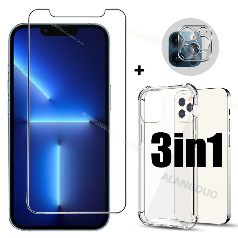 Прозрачный чехол для телефона, стекло для iPhone 13 12, 11Pro Max, мини Защитное стекло для iphone 13 Mini Pro Max, противоударный чехол