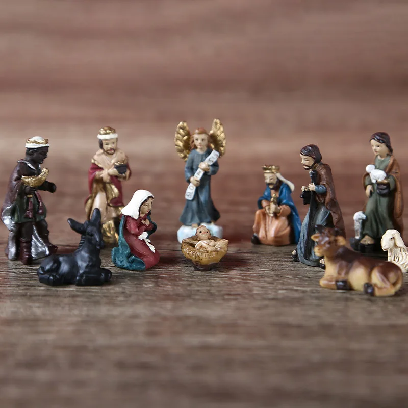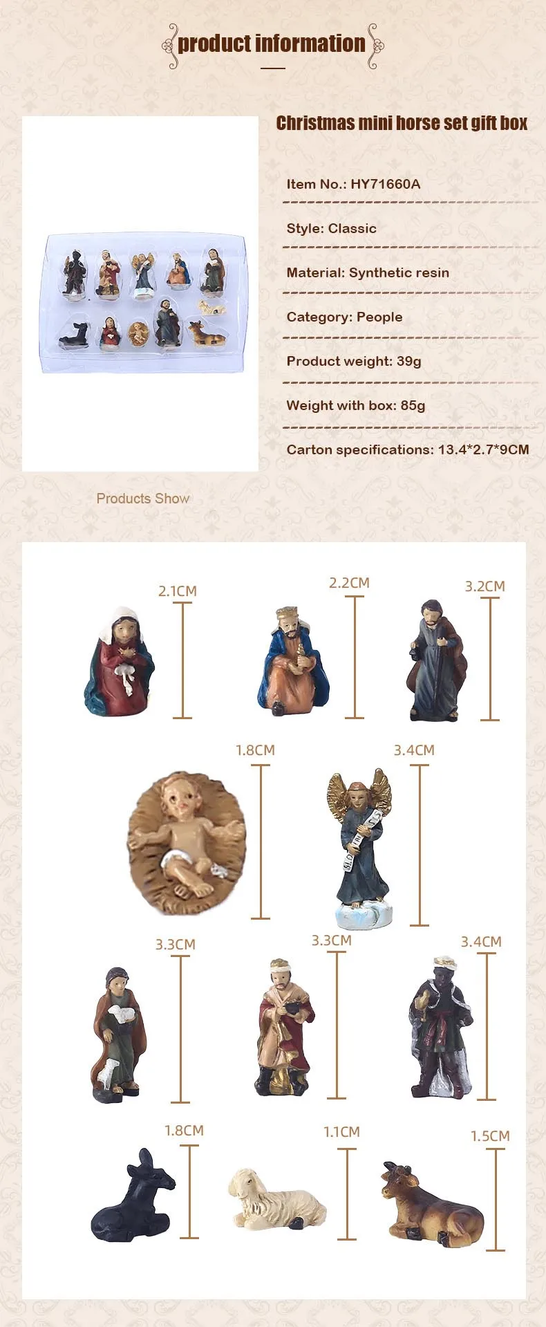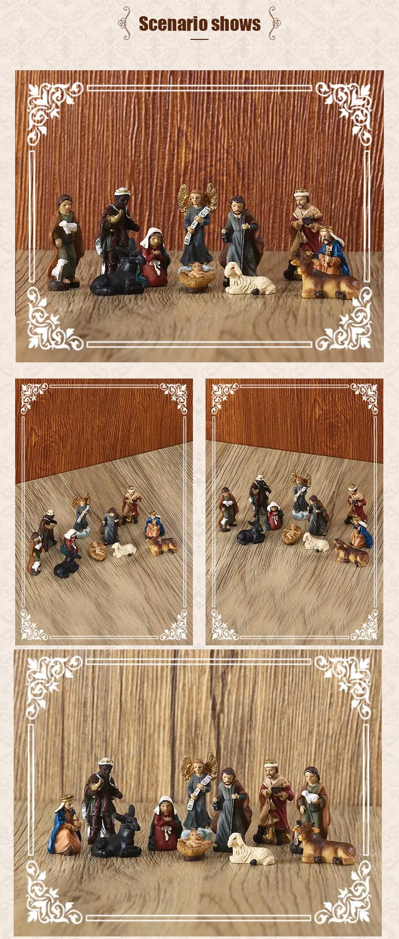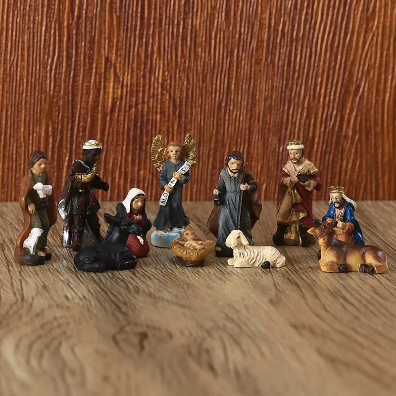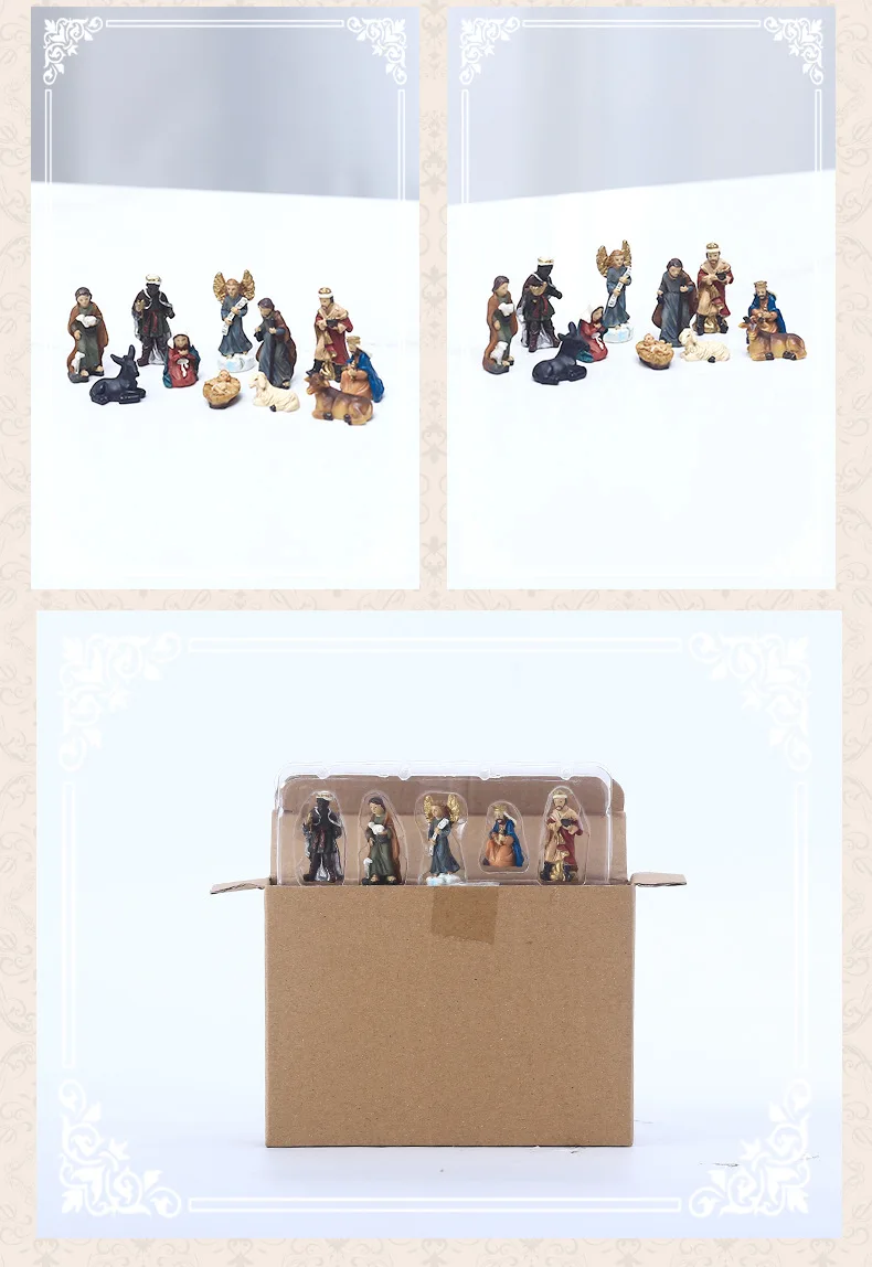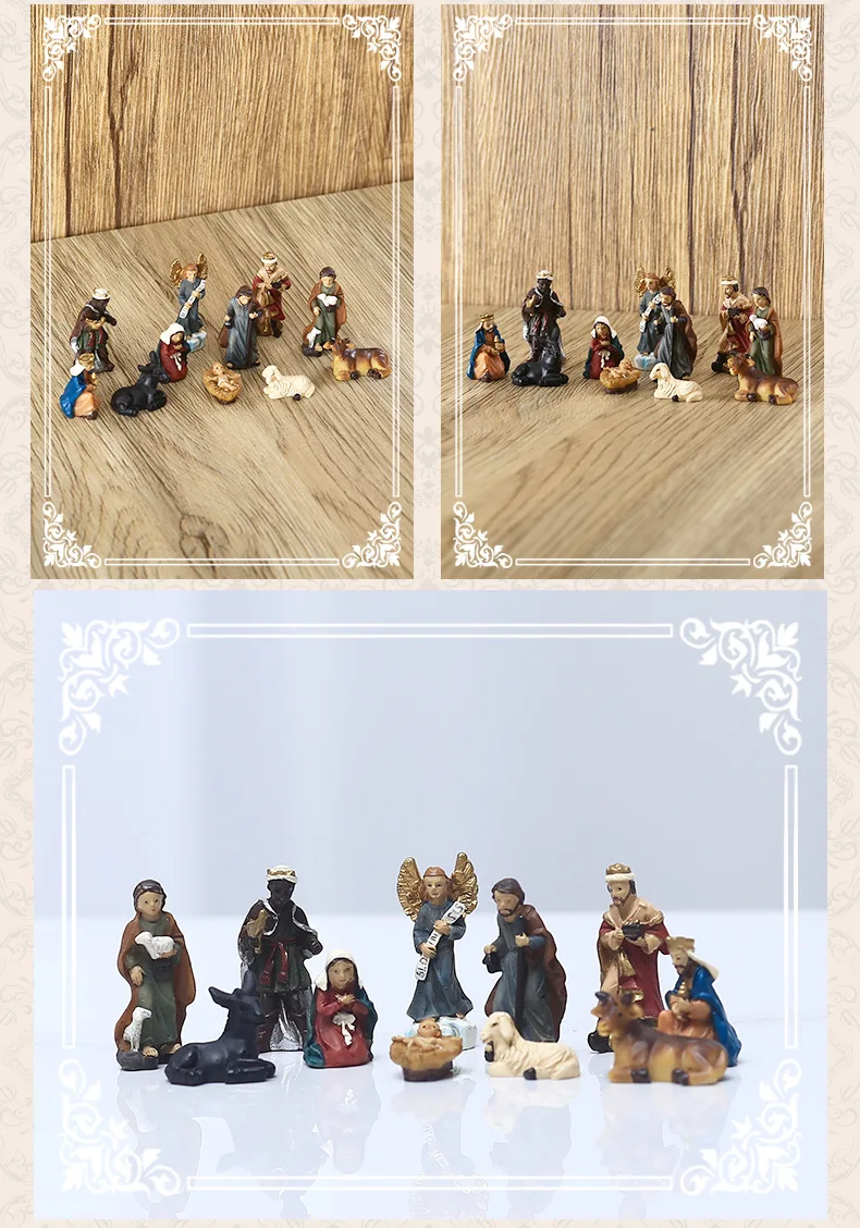 Рождественское украшение для дома 3 см, кормушка для Западной мифологии, набор из 11 предметов, религиозные украшения, миниатюрная модель 3D для рождества, поделки из смолы