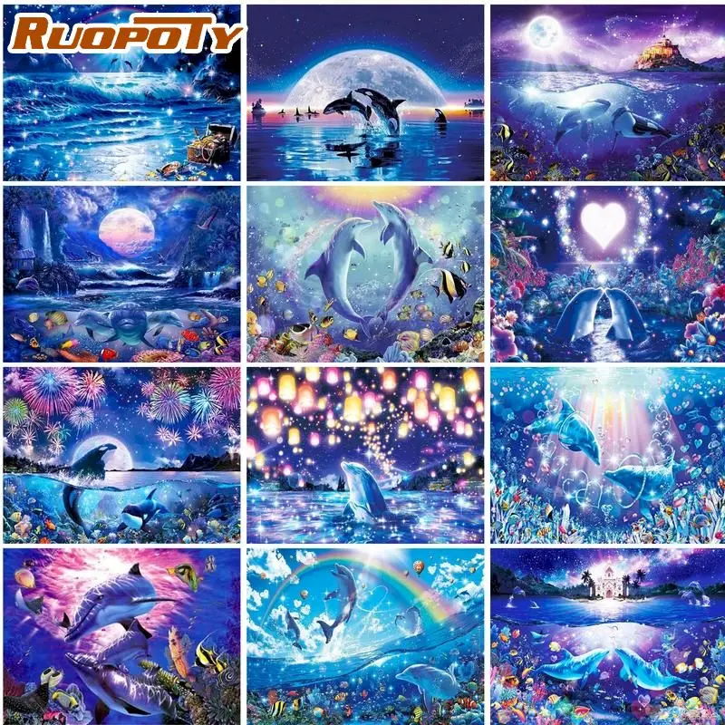RUOPOTY Набор для рисования по номерам с рамкой, животные, Дельфин