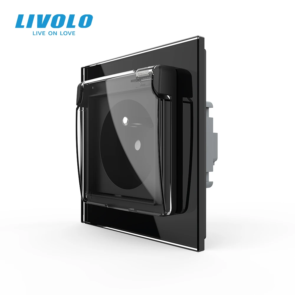 Настенная розетка Livolo, французская стандартная 16 А, прозрачная стеклянная панель, 3 вилки со средним штифтом, водонепроницаемая крышка