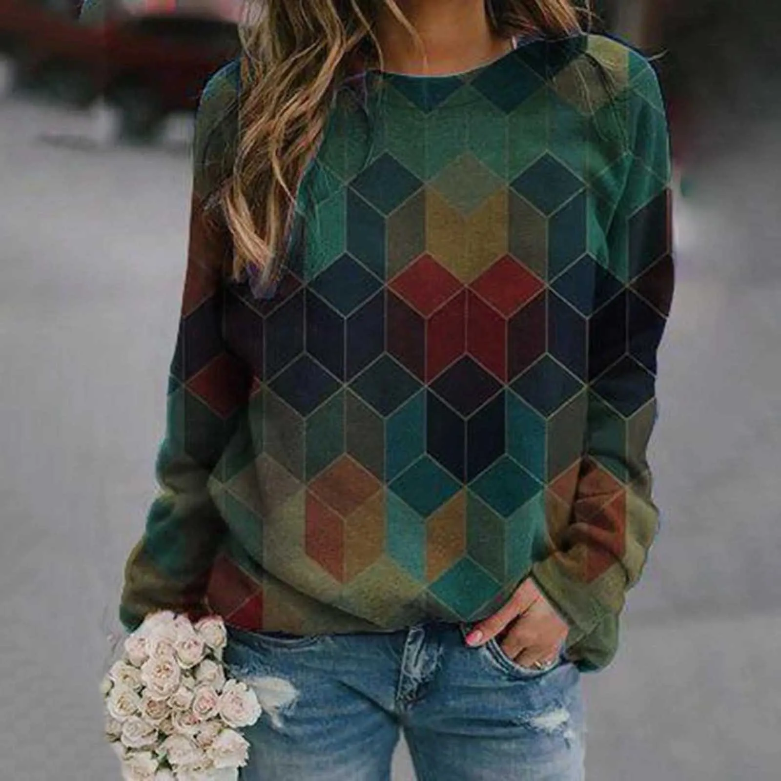 Женские повседневные толстовки с принтом, теплые футболки с круглым вырезом и длинными рукавами, свободные удобные топы-туники