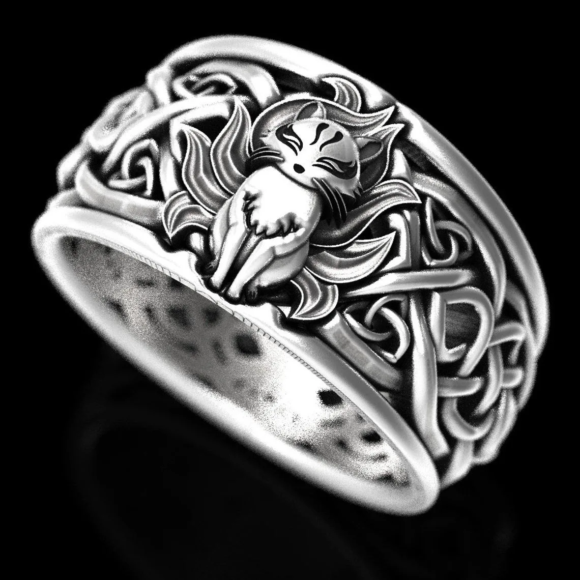 Винтажное кольцо с изображением лисы и девятью хвостами в стиле древней мифологии, старинное серебряное кольцо, мужские подарки на день рождения, бижутерия