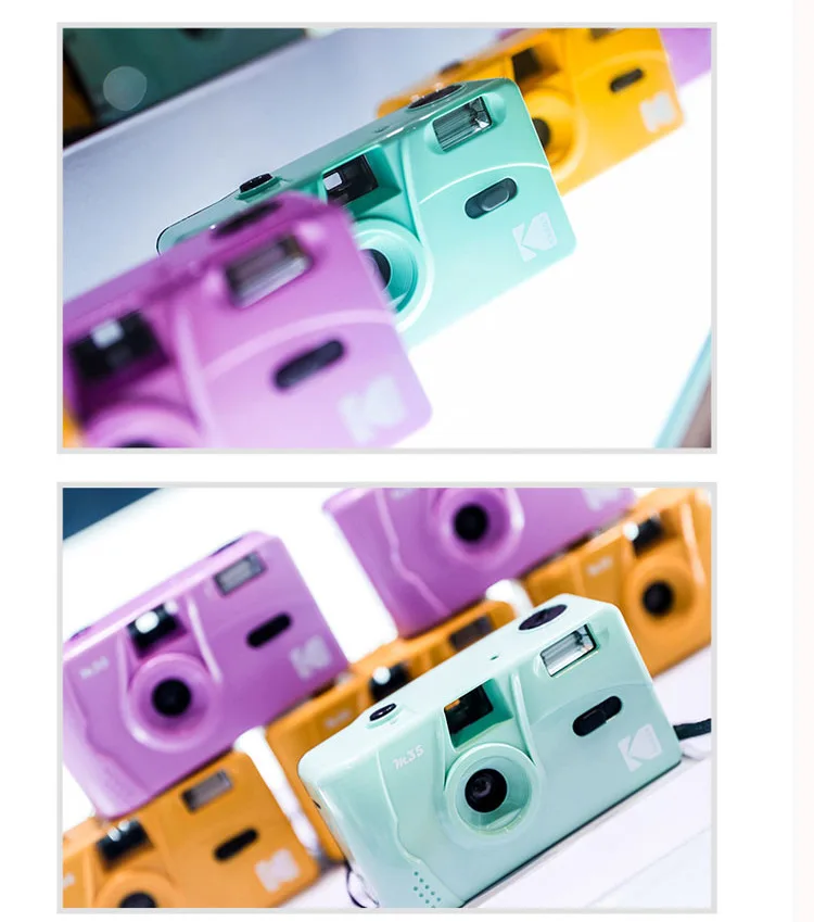 Kodak M35 и M38 являются многоразовыми пленочными камерами, которые используют пленку 35 мм. Как и одноразовая серия камер, M35/M38 имеет объектив с фиксированным фокусом, ручную пленку и перемотку, а также функцию включения/выключения, которая может переключить вспышку. Просто купите рулон пленки 35 мм и загрузите его, сфотографируйте, перемотайте и возьмите пленку в магазин фотостудии для разработки.