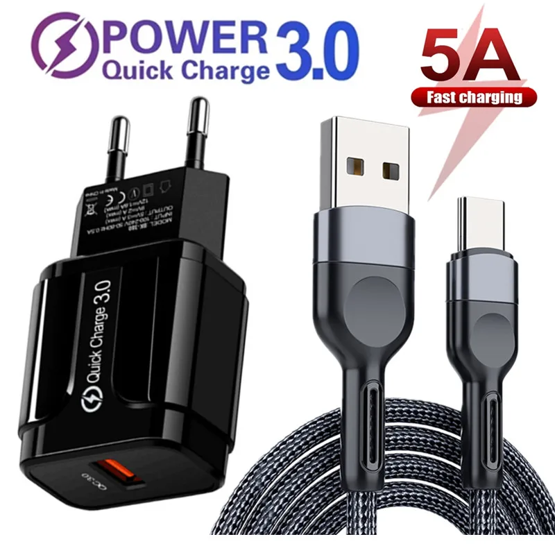 Кабель USB C, зарядное устройство для быстрой зарядки QC 3,0, европ...