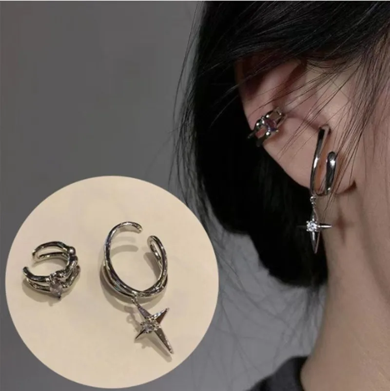 1 шт. 2021 новые модные серьги-клипсы со звездами для женщин, простые серьги-каффы с длинной кисточкой и искусственным хрящиком