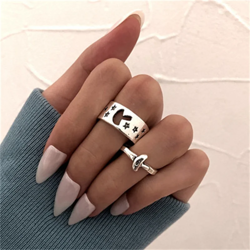 Винтажный набор колец с инкрустацией в виде полых грибов, кольца дл...