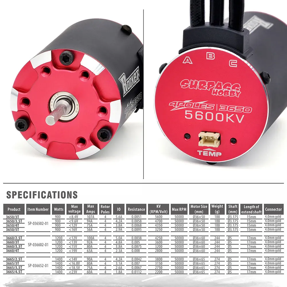 Суперзвуковой датчик температуры бесщеточного двигателя Rocket V2 3650 5600KV для радиоуправляемого автомобиля 110 114 116 Дрифт-грузовика Wltoys Traxxas Hsp 540