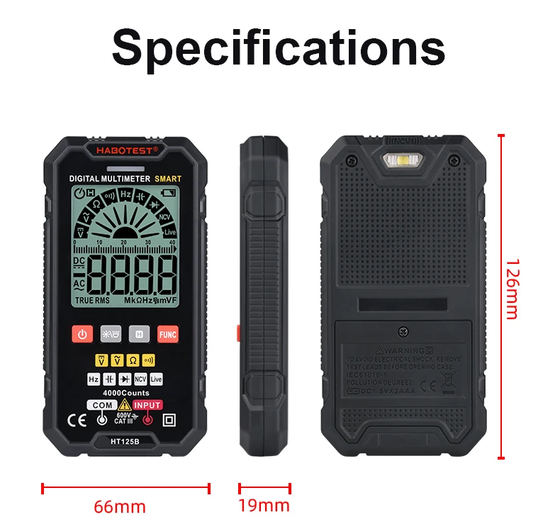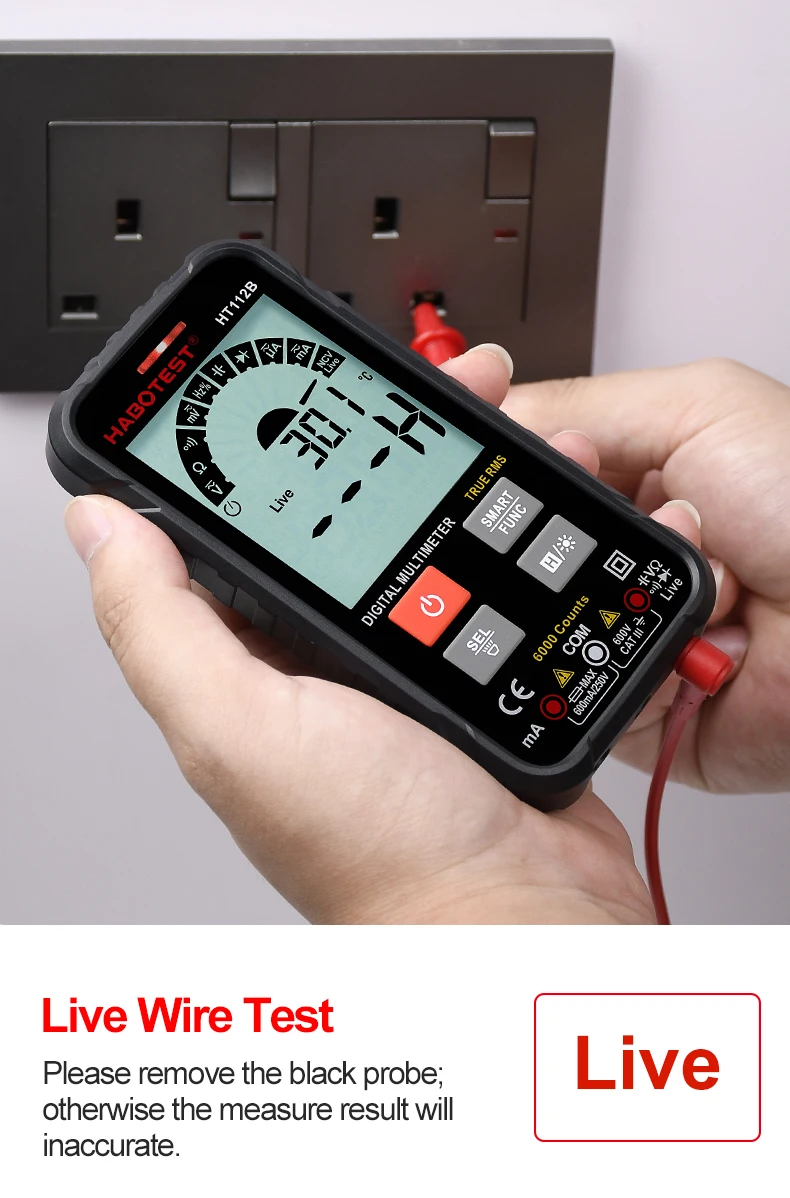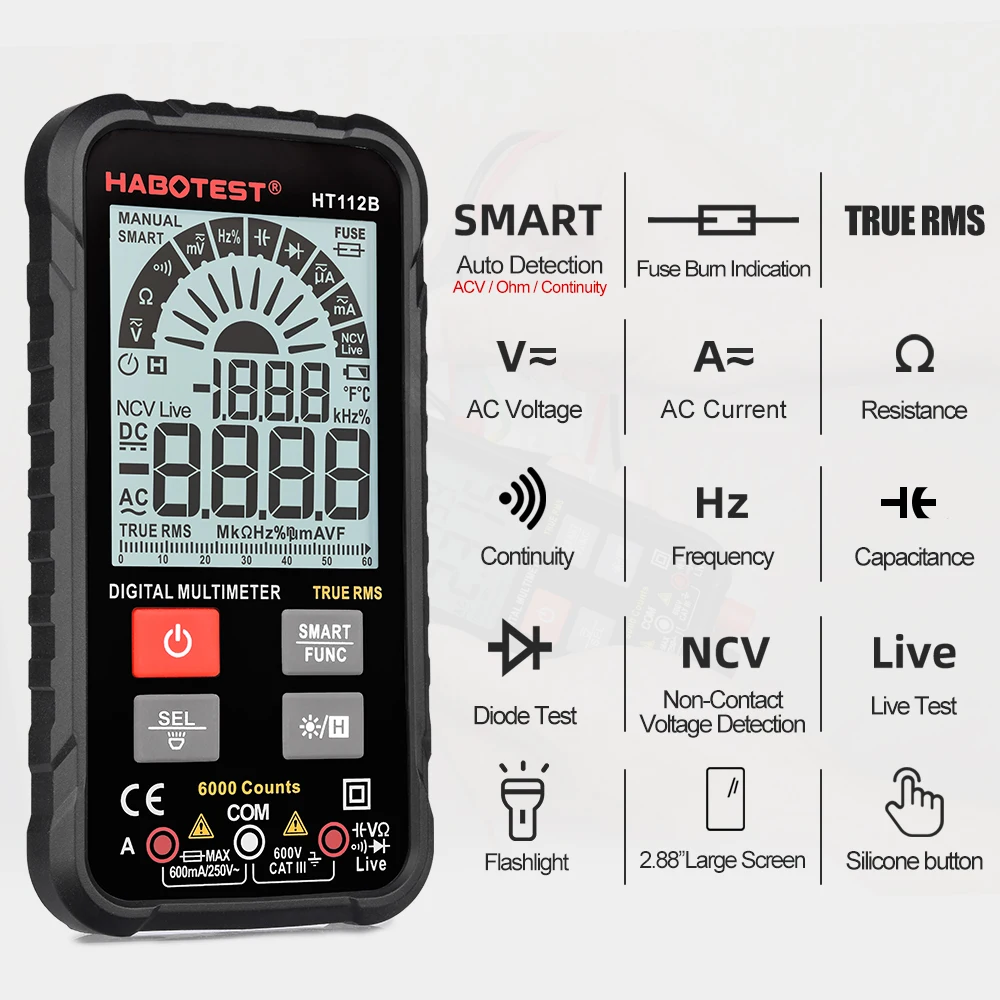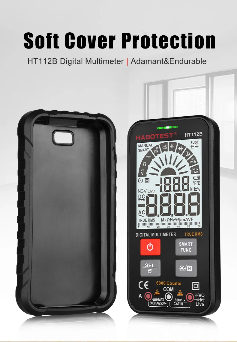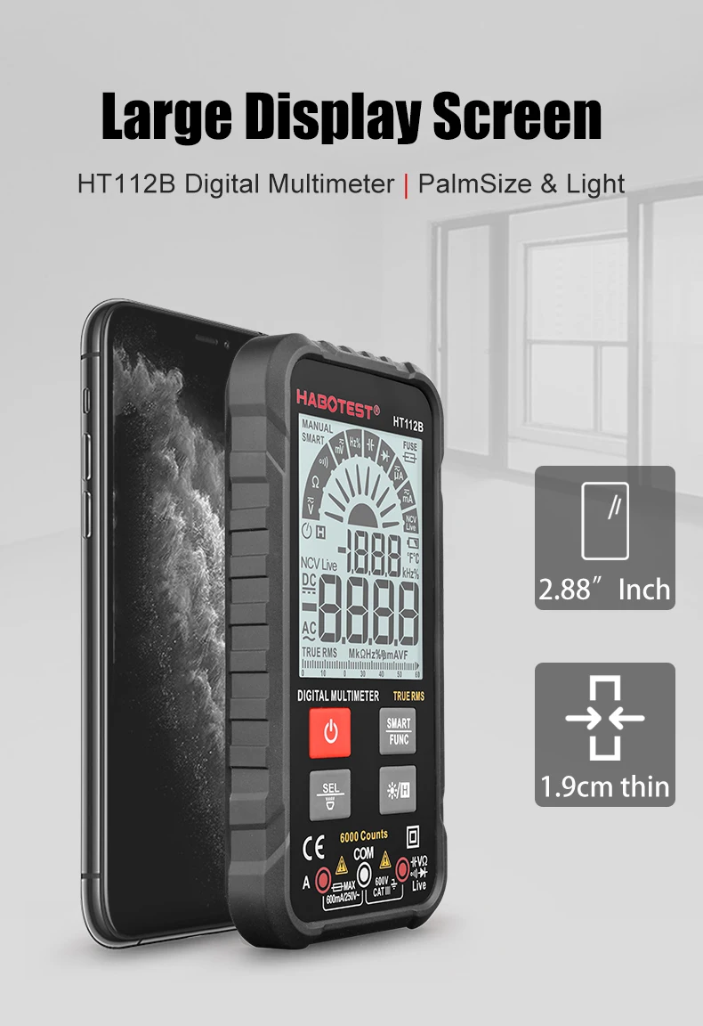 Цифровой умный мультиметр HT112B, измеритель напряжения и силы тока...