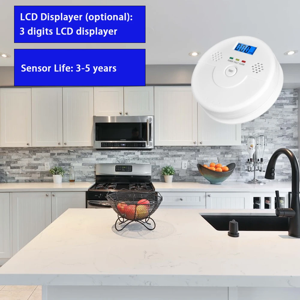 Детектор угарного газа с 7-летним сроком службы датчика, работающий от аккумулятора, датчик угарного газа с цифровым дисплеем, голосовая сигнализация для дома