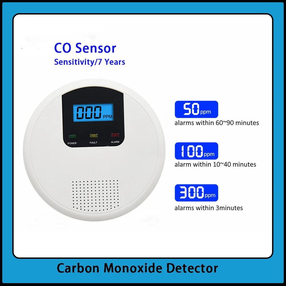 Умный ЖК-дисплей детектор угарного газа датчик CO сигнализация 7 лет датчик жизни 85 дБ Bulit in siren противопожарная защита домашняя охранная сигнализацияЦифровой детектор угарного газа сигнализация 7 лет профессиональная Домашняя безопасность беспроводная со сигнализация 85 дБ Bulit in siren оборудование пожарной безопасности