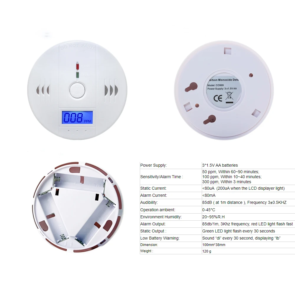 * 7 лет датчик жизни CO детектор умный детектор окиси углерода с голосовой подсказкой, микропроцессор управления.* Сигнализация окиси углерода является единственным сигналом, работающим от аккумулятора, который включает функцию цифрового дисплея с подсветкой. Эта ключевая функция добавляет расширенный уровень защиты.* Работающий от батареи CO alarm включает в себя несколько вариантов крепления, что позволяет устанавливать на стену или столешницу.* При запуске детектора газа. Этот детектор принимает датчик каталитического метода сгорания, который является стабильным и надежным. Он защищает место от опасности угарного газа.* Этот продукт может хорошо использоваться в виллах, фабриках, торговых центрах, складах, офисных зданиях и т. д. В помещениях.