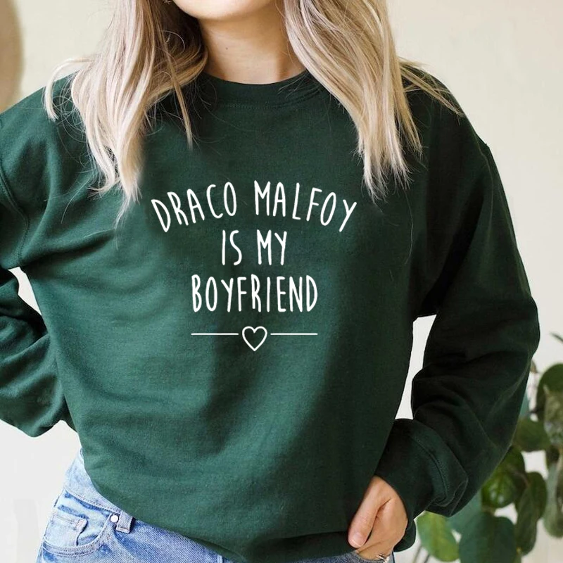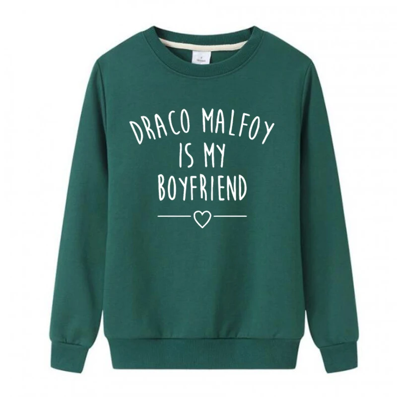 Толстовка Draco Malfoy с надписью Is My бойфренд, женская зеленая толстовка с круглым вырезом, пуловер в стиле Харадзюку, свитшоты, женская одежда