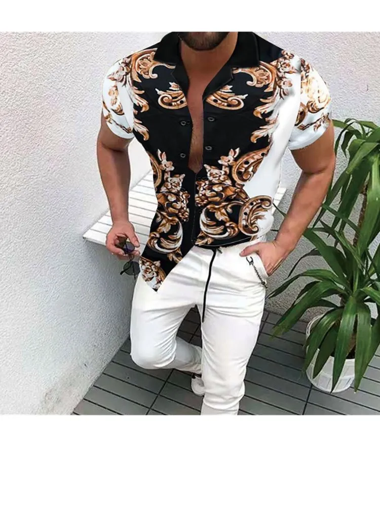 Мужская Повседневная рубашка с принтом, гавайская брендовая уличная одежда, кардиган высокого качества с короткими рукавами, Классическая рубашка, лето 2021