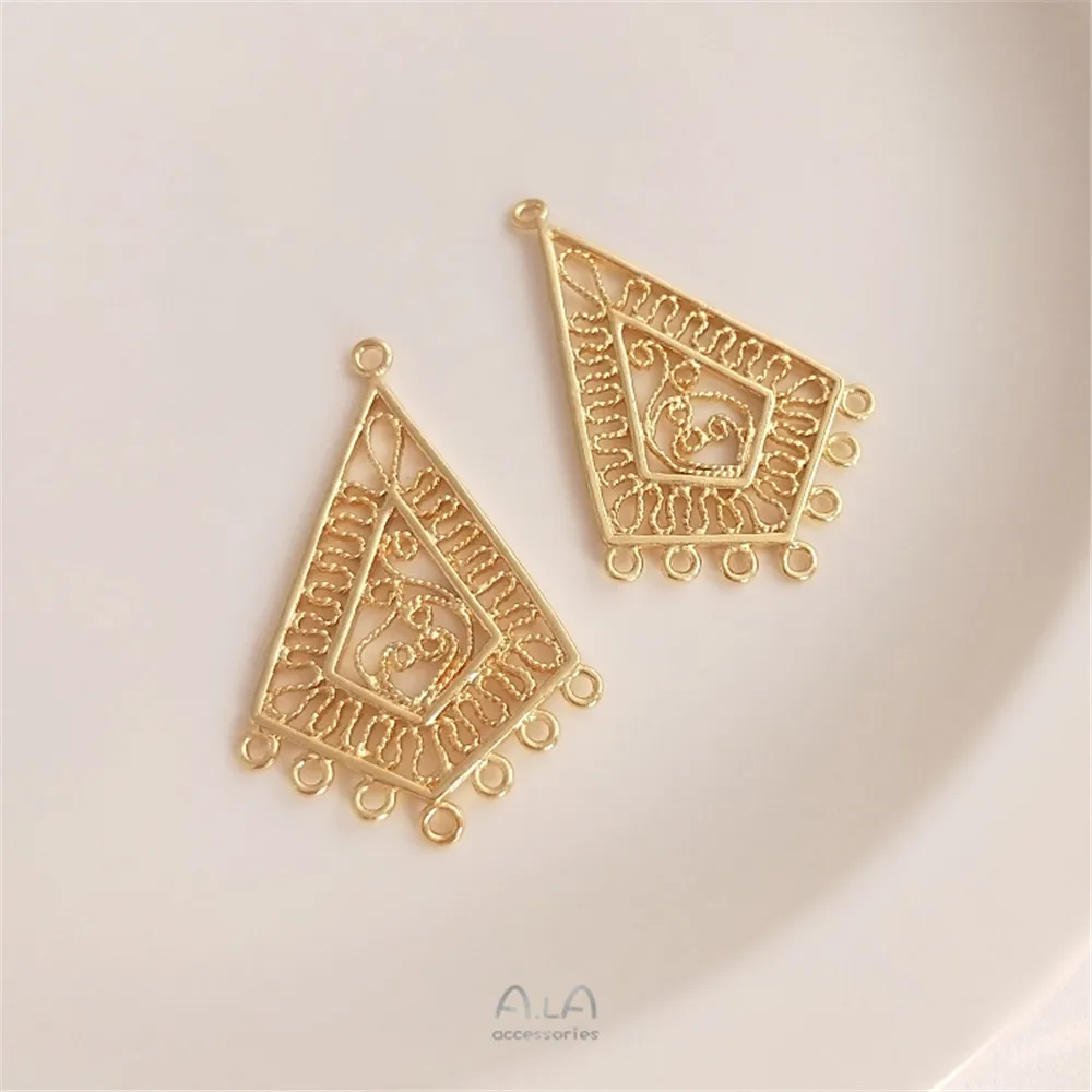 14K, покрыто золотом, полым из кружева с геометрическим узором в форме сердца со стразами мульти Подвески кольцо DIY Кисточка Серьги и головные уборы