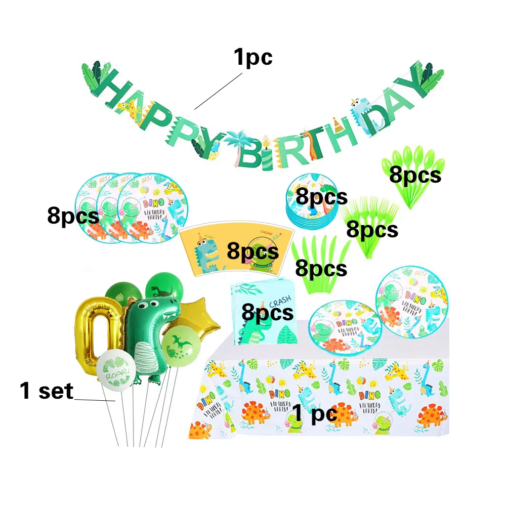 73 пакет служит 8 динозавров вечерние принадлежности Набор идеальный динозавр день рождения тарелки салфетки чашки вилки ложки ножи Количество воздушных шаров