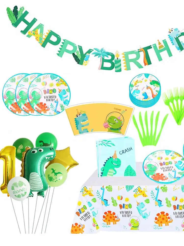 73 упаковки, Набор принадлежностей для вечеринки в честь Дня Рождения динозавра, идеальные тарелки в виде динозавра, салфетки, чашки, вилки, ложки, ножи, цифры, шары