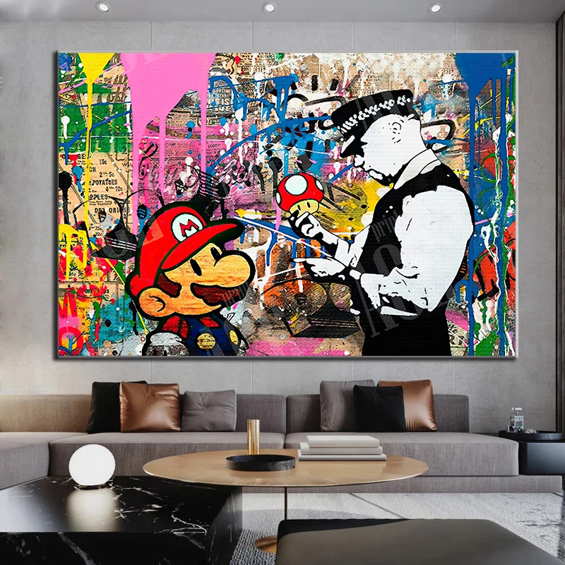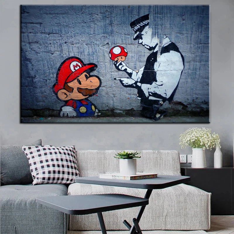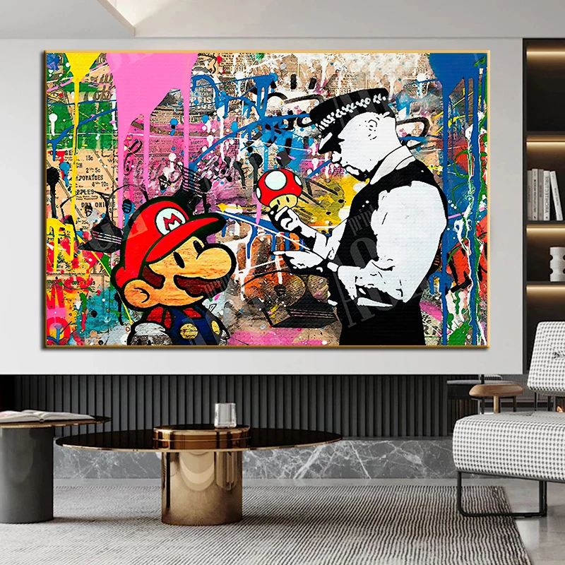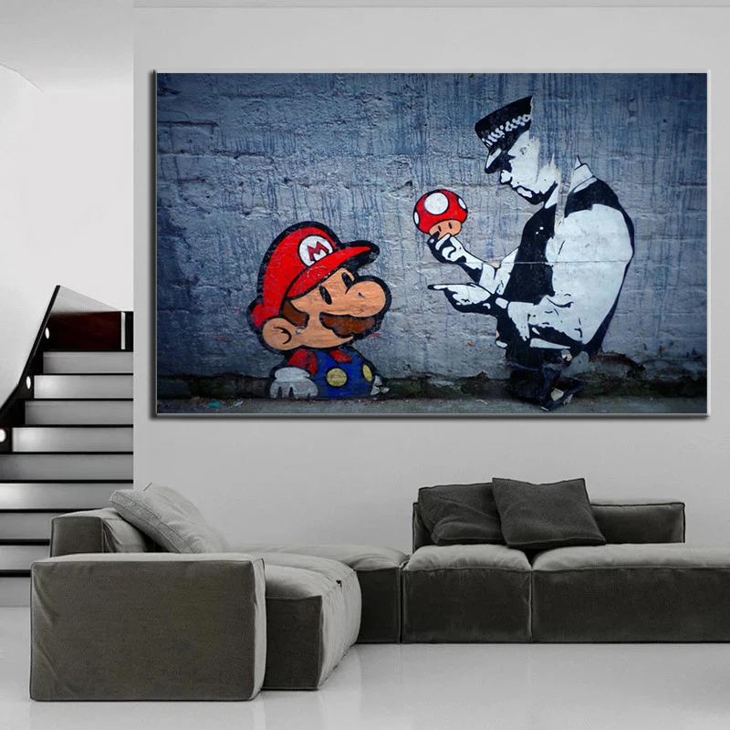 Постер Бэнкси уличный граффити художественные картины на холсте Абстрактная Марио и КОП печать Настенная картина для гостиной украшение для дома