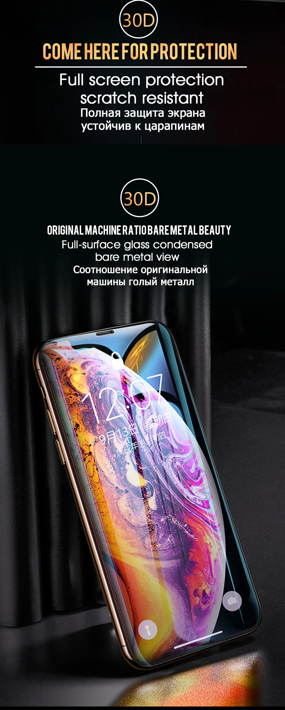 Полноэкранная защитная пленка 30D для iPhone 11 Pro X Xr Xs Max, за...