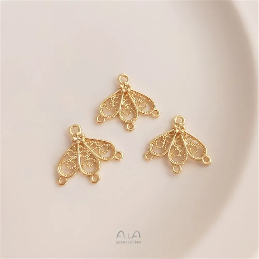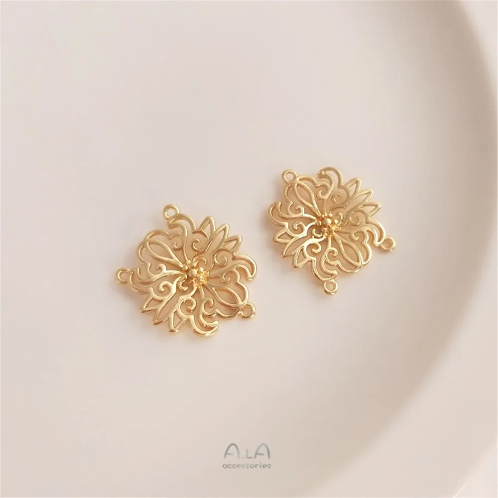 14K позолоченные литые медные позолоченные венки заколки для волос Серьги Кулон DIY антикварная кисточка пористые соединения аксессуары