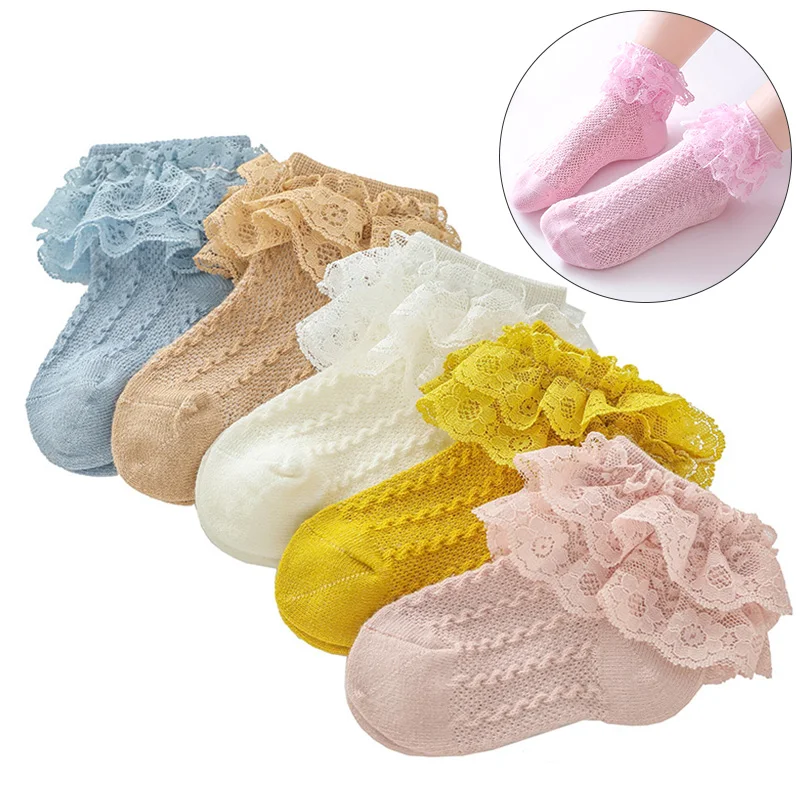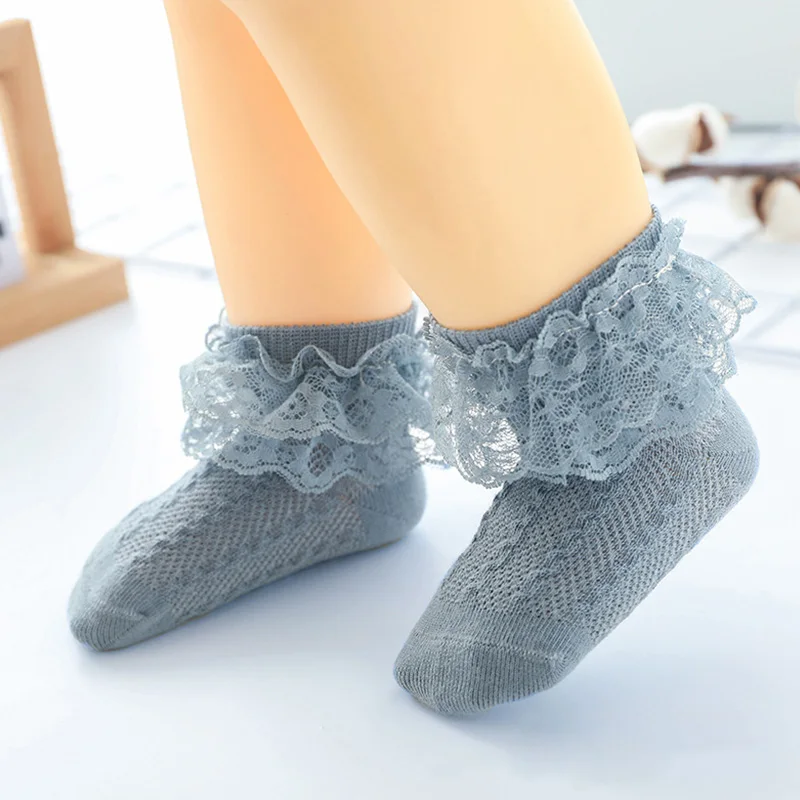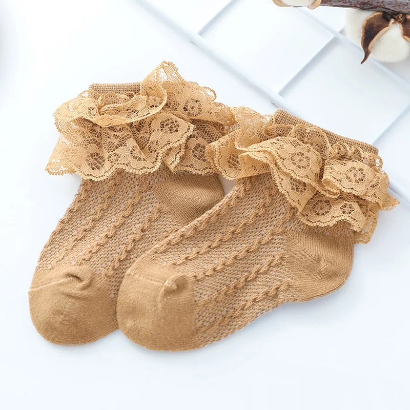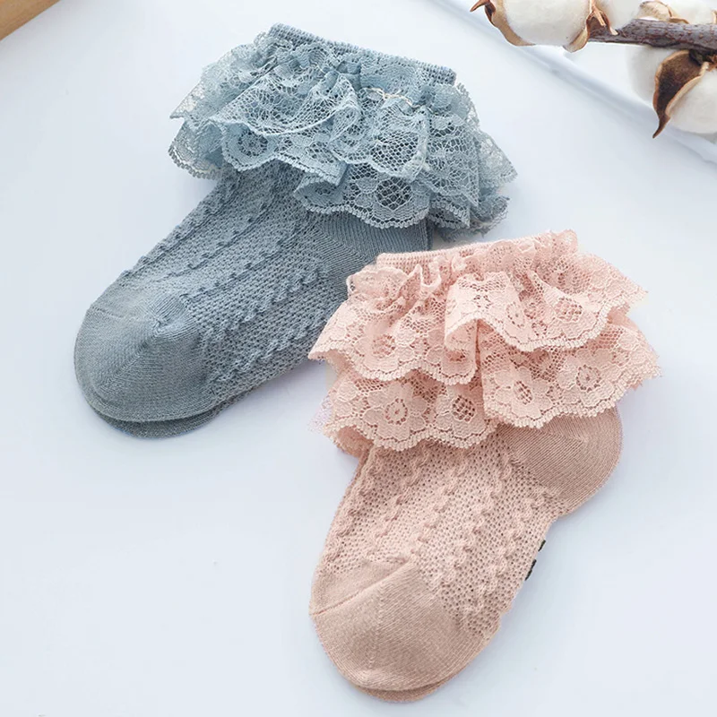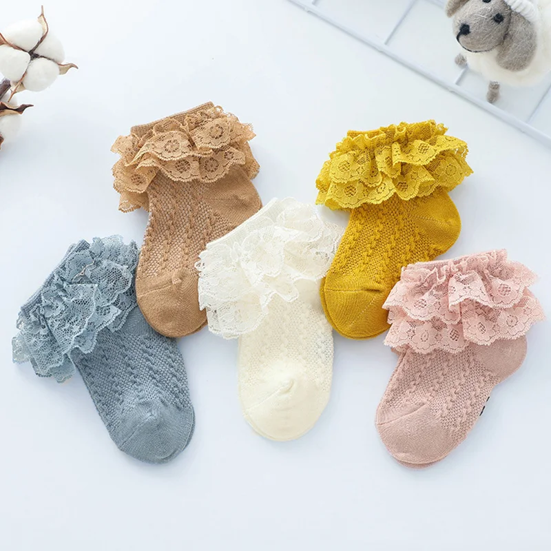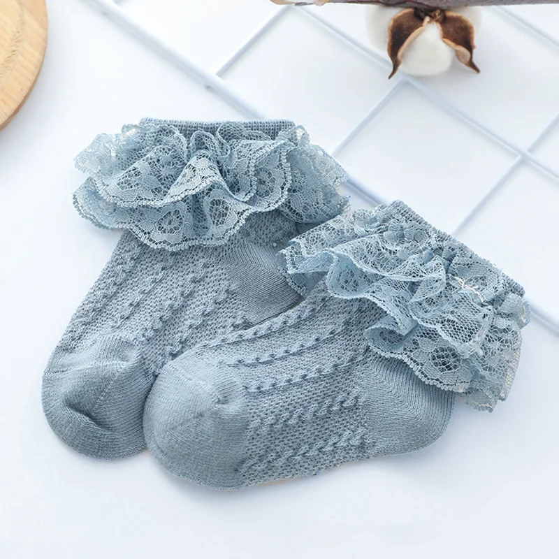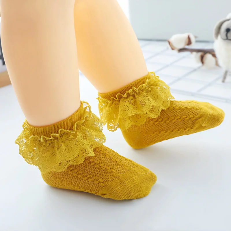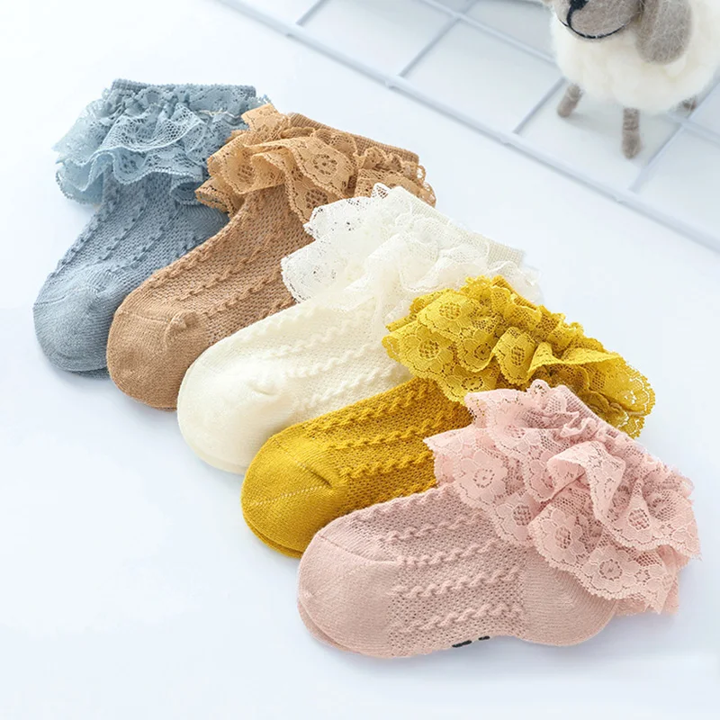 Носки детские кружевные эластичные, из мягкие носки до лодыжки хлопка, с оборками, для новорожденных