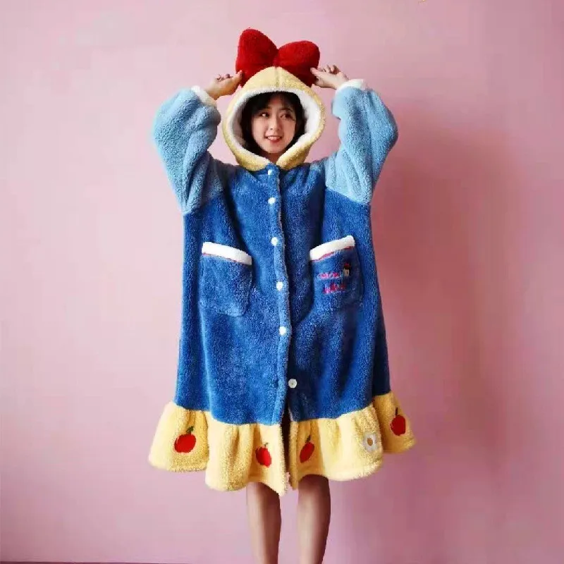 Осенне-зимняя женская ночная рубашка с капюшоном, халат, халат, мультяшная утка, теплое плюшевое одеяло из кораллового флиса, плащ, пижамный комплект, брюки