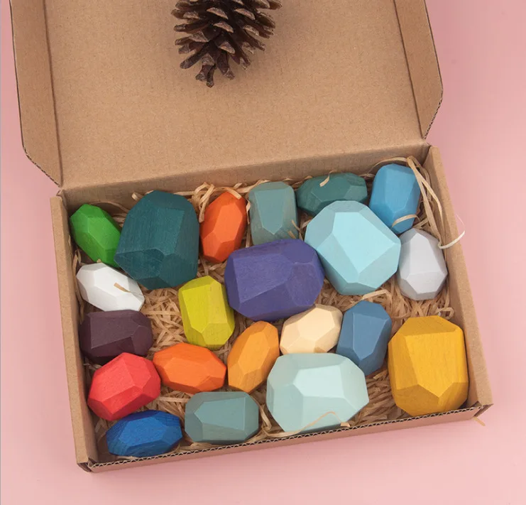 Хит продаж, красочные деревянные игрушки, строительные блоки, креативные Детские Обучающие деревянные игрушки Монтессори для детей, игра для укладки радужного камня