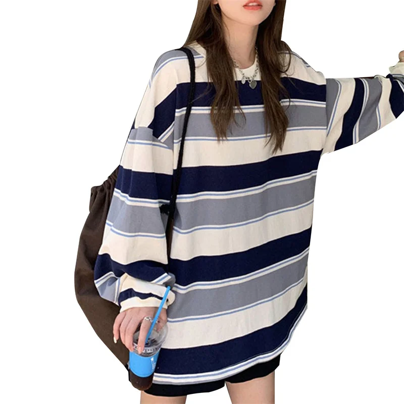 Женская свободная футболка в полоску, футболка большого размера с длинным рукавом, 2XL 2021
