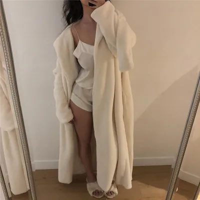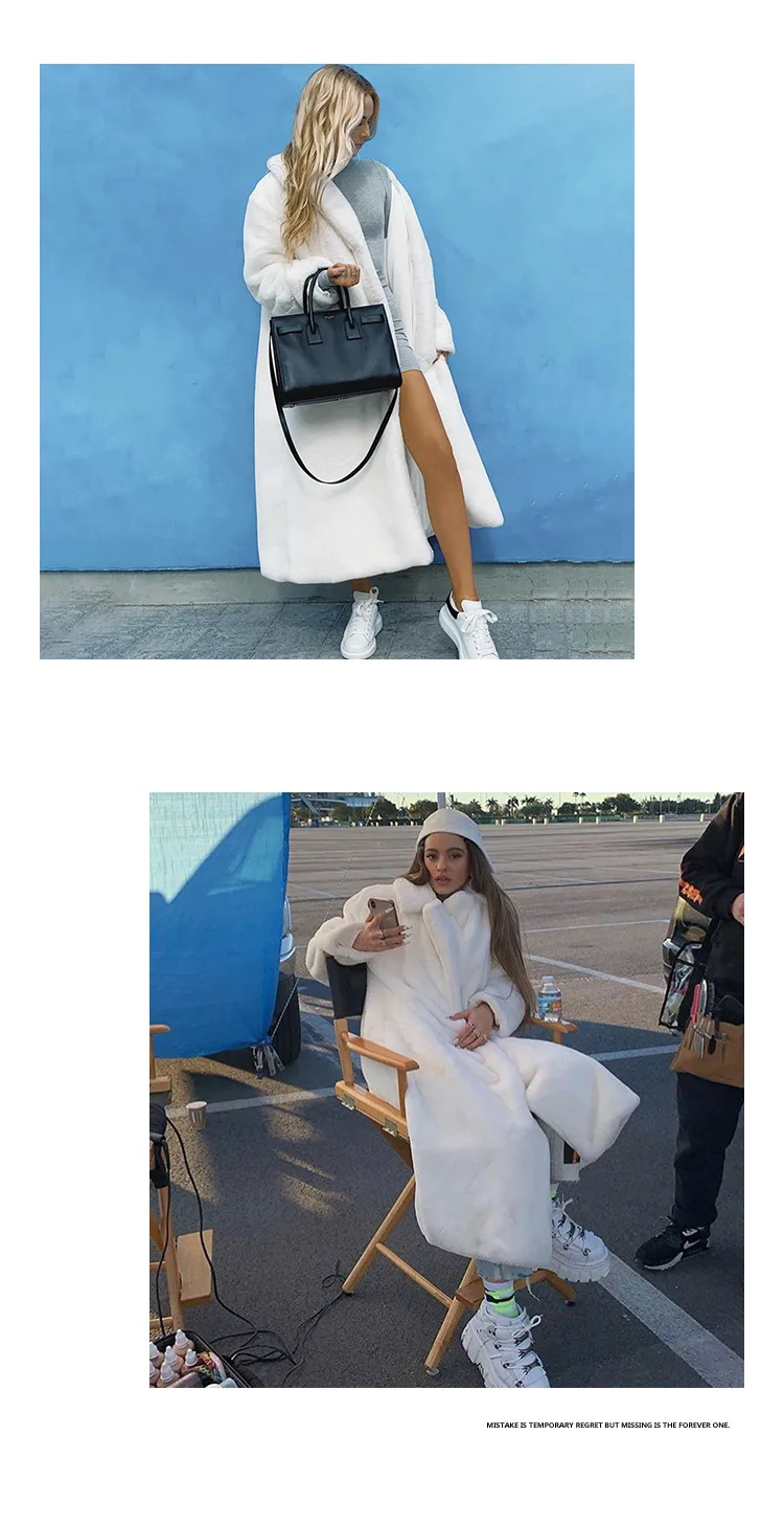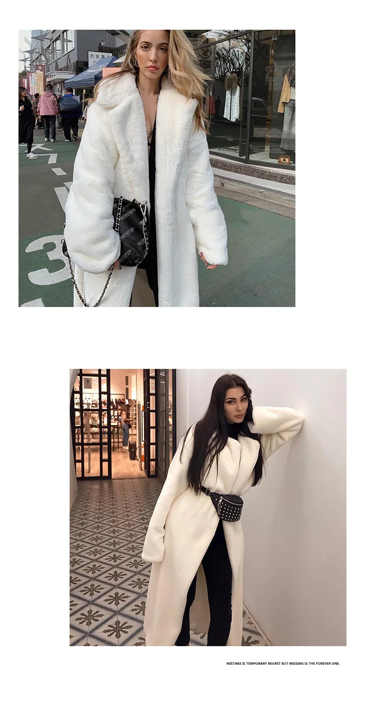 Зимнее женское пальто из искусственного кроличьего меха, Удлиненное пальто до колена, Свободное пальто с лацканами, толстые теплые женские плюшевые пальто