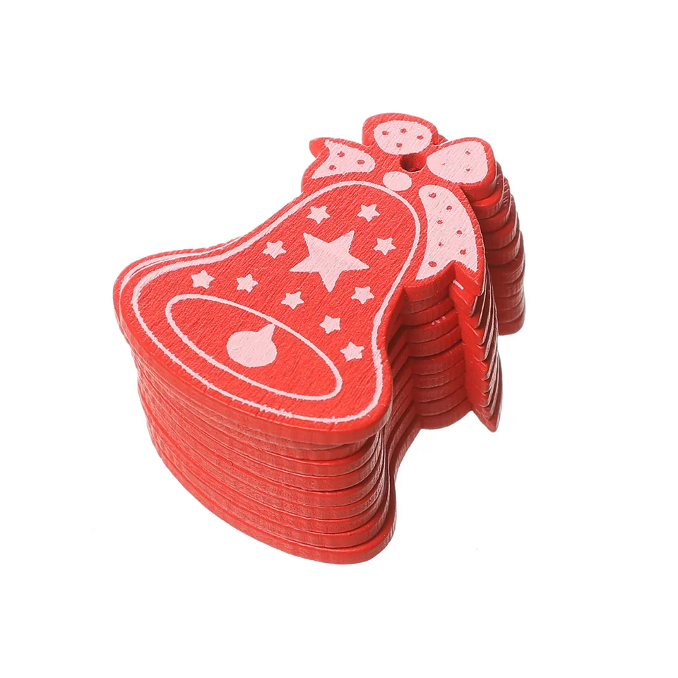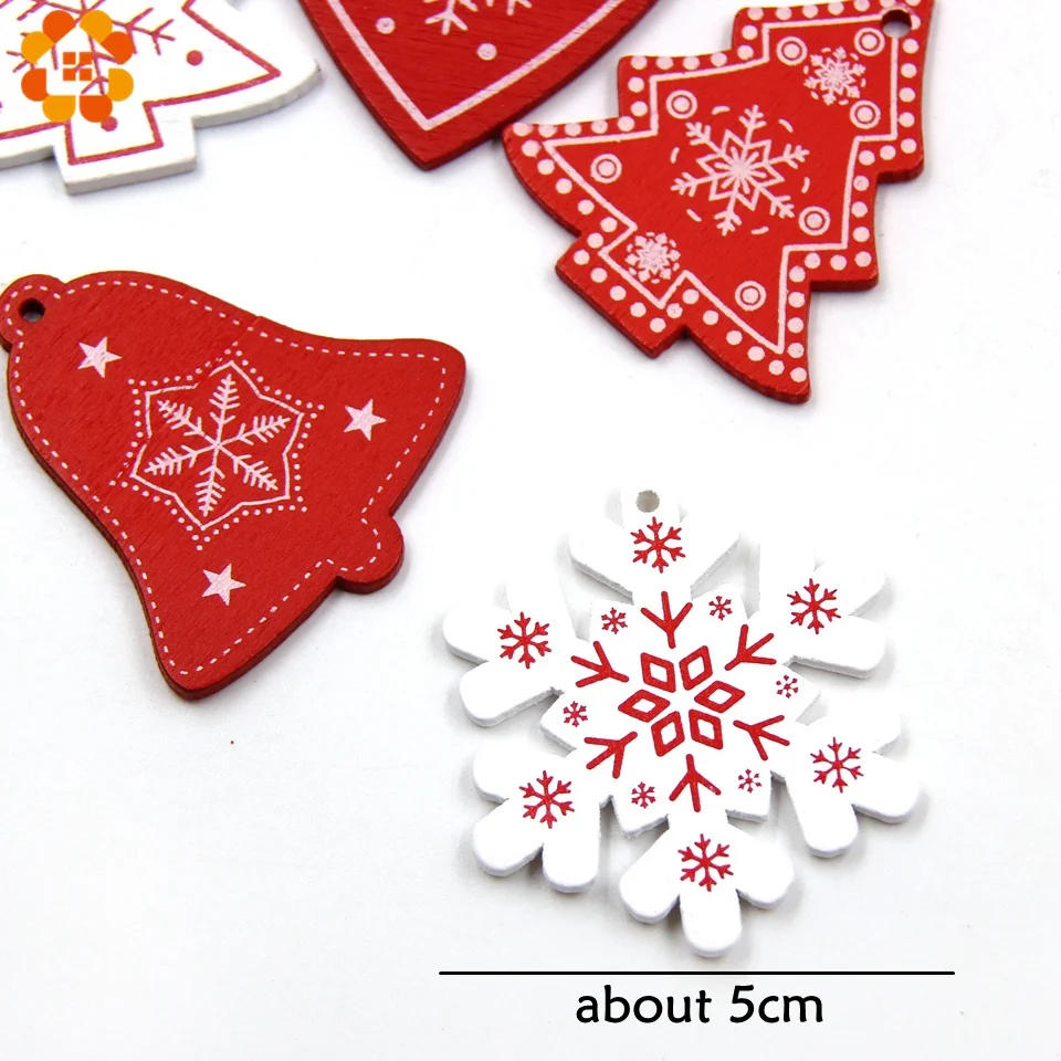 18 шт. DIY бело-красные рождественские деревянные подвески Рождественский колокольчик Снежинка украшения для рождественских подарков украшения для елки