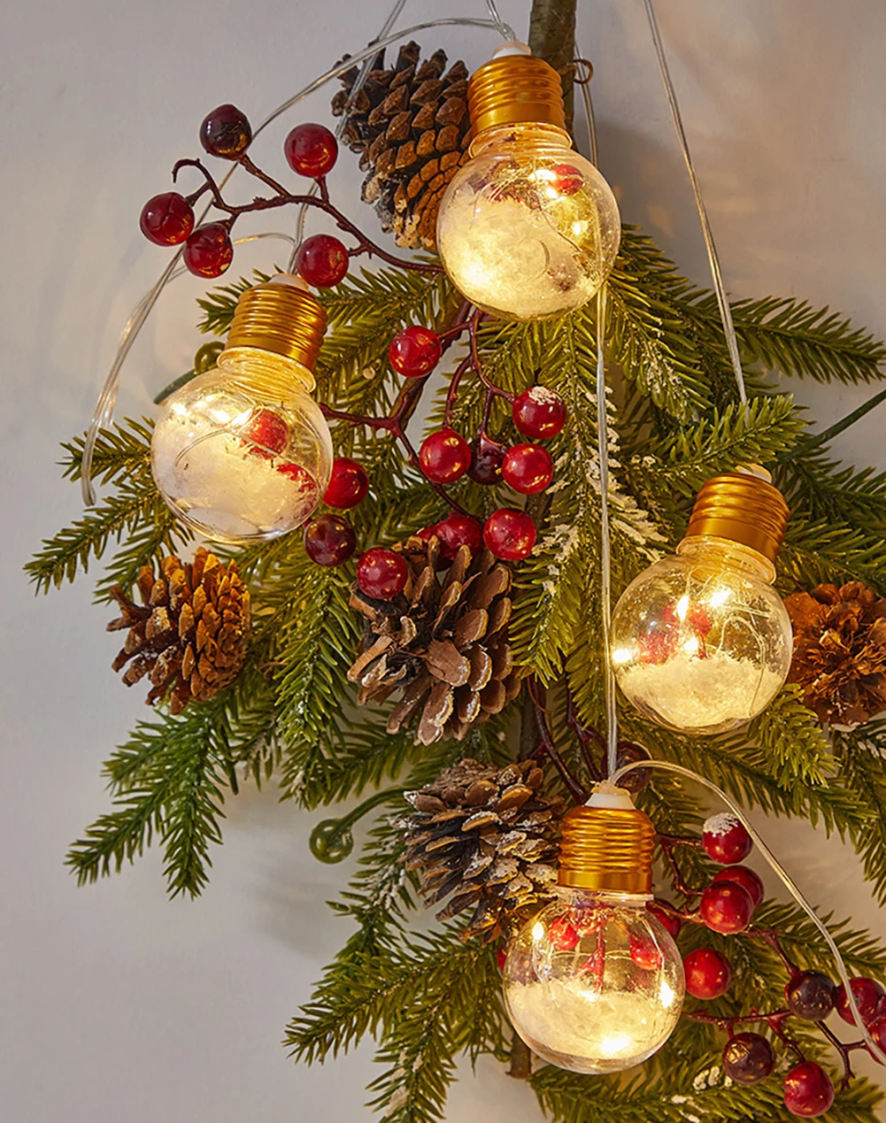 Рождественская светодиодная гирлянда для украшения комнаты, гирлянда для рождественской елки, светящаяся гирлянда с красными конусами и иглами, праздничная гирлянда