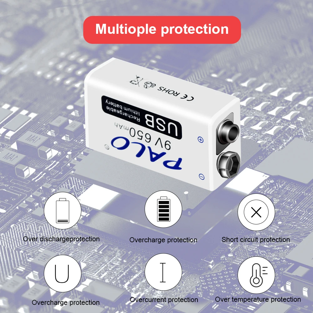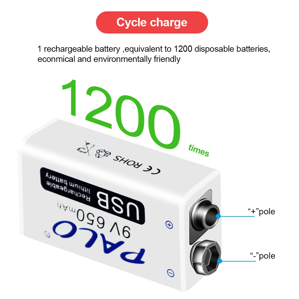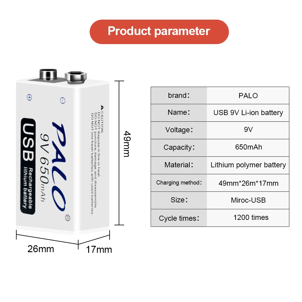 Аккумуляторная батарея 9 V 650mAh Micro USB 9 вольт 6F22 литиевая Корона 9 v батареи для мультиметра KTV микрофон металлоискатель