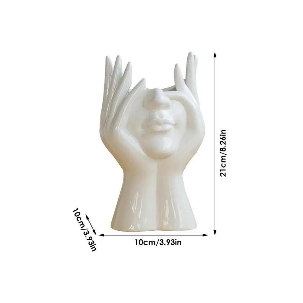 Bullet Points: 1. Прочная и красивая: Эта художественная ваза для лица изготовлена из керамических материалов премиум-класса и отличается гладкостью и яркостью, она долговечна и красива.2、Multiple Usage: Large opening provides easy access to your items inside. More than a vase, this flower vase can be used as a pen holder.3. Широкое применение: идеально подходит для цветочного дизайна, добавляя растительные цветы, чтобы приносить зеленость и элегантность вашему дому. (Обратите внимание, что растения не входят в комплект)4、Grace Anywhere: A perfect addition for living room, bedroom, dining table vase, office, coffee shop, etc.5. Идеальный подарок: эта ваза добавит очарования и красоты в ваше живое пространство. Идеальный подарок для друзей, семьи и близких. Отличная идея для подарка на день рождения и новоселье.Specifications: Название: ваза для цветов с человеческим лицомMaterial: CeramicSize: L: около 10*21*10 см/3,94*8,27 * 3.94inS: about 9*18*8.5cm/3.54*7.09*3.35in Упаковочный лист:Vase*1 (plants Not Included)Примечания: Due to the lighting effects and shooting angles, the color of the item and that shown in the picture might have a nuance.