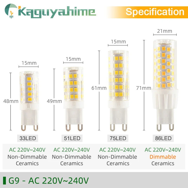 Светодиодная лампа Kaguyahime G9 G4 E14, диммируемая лампа 3 Вт, 5 ...