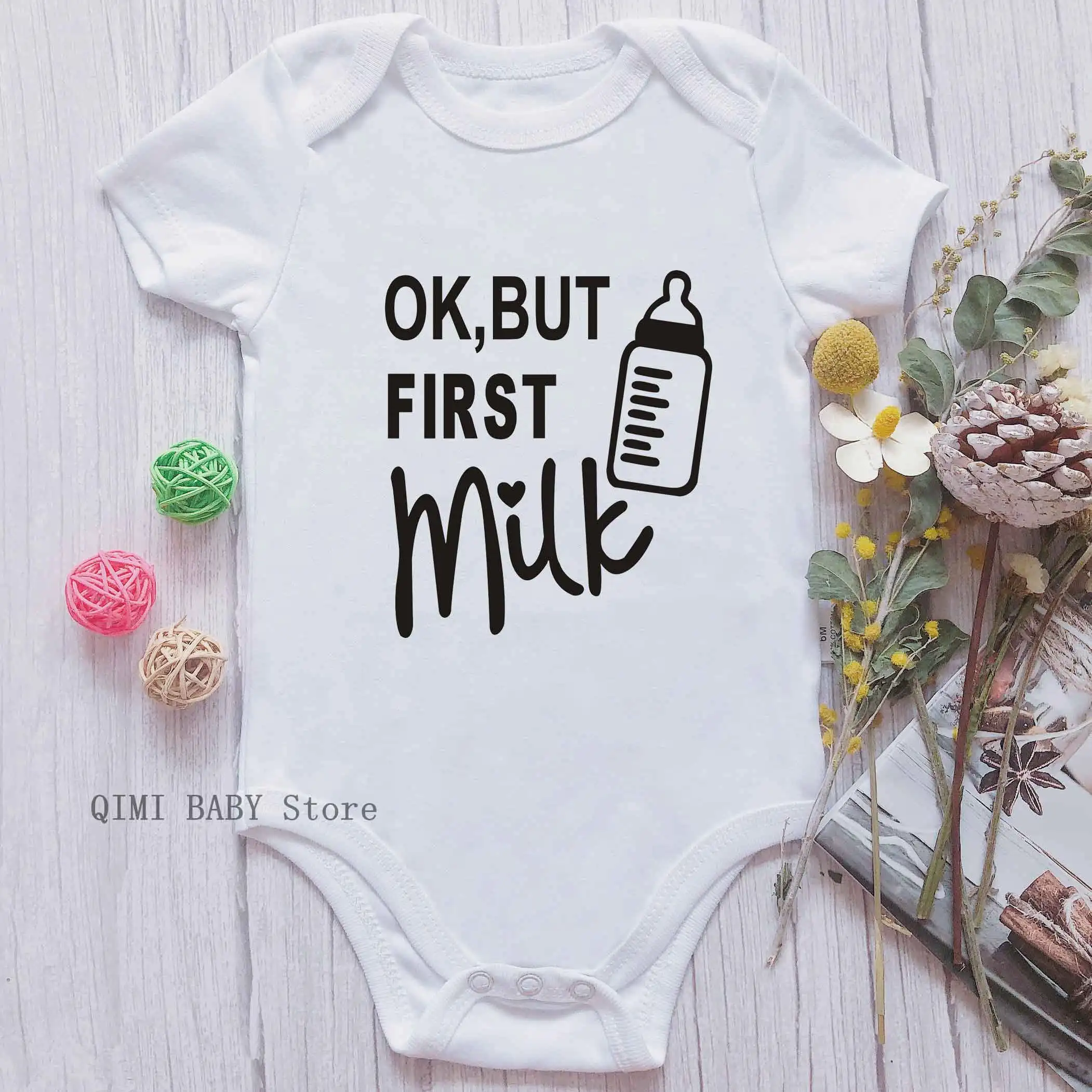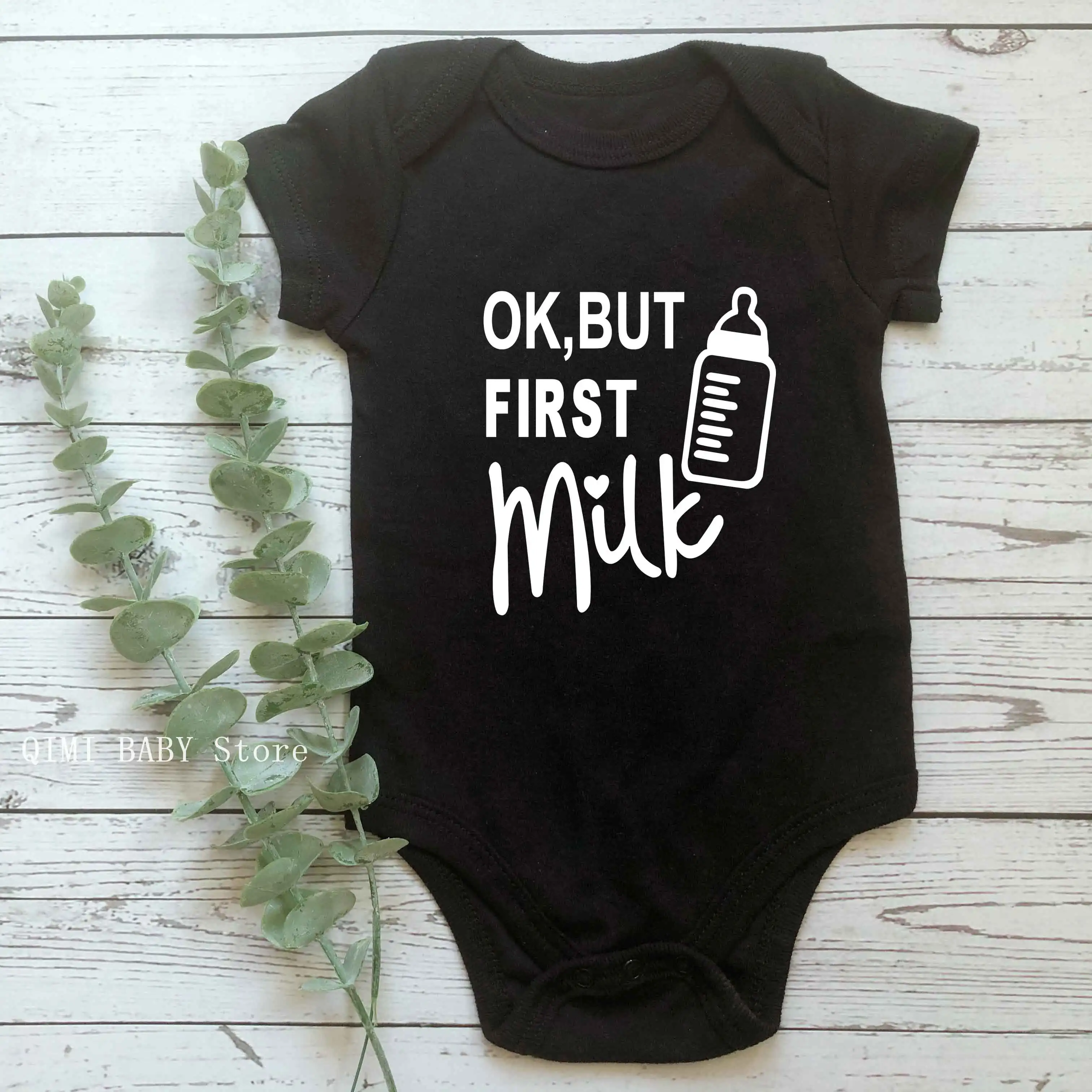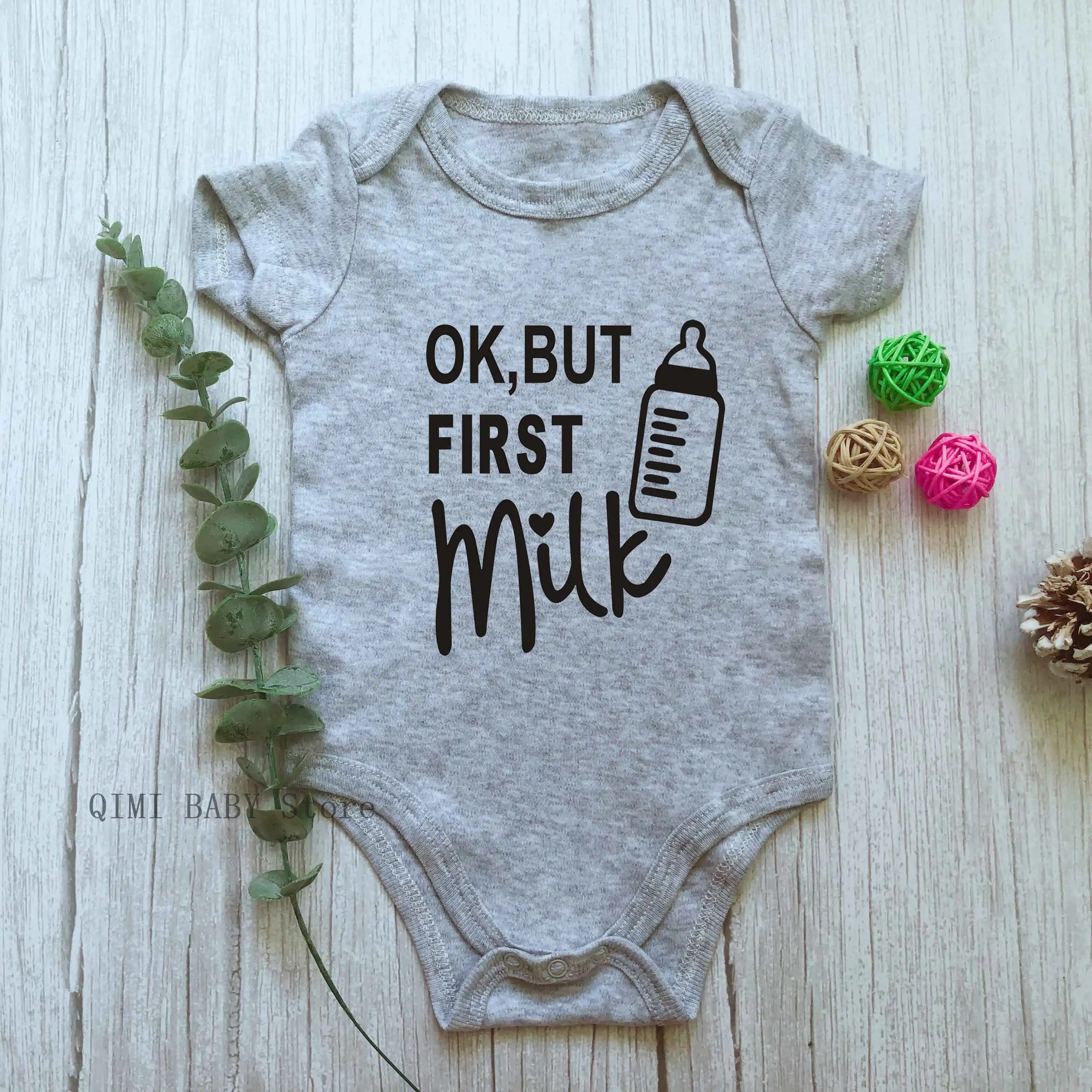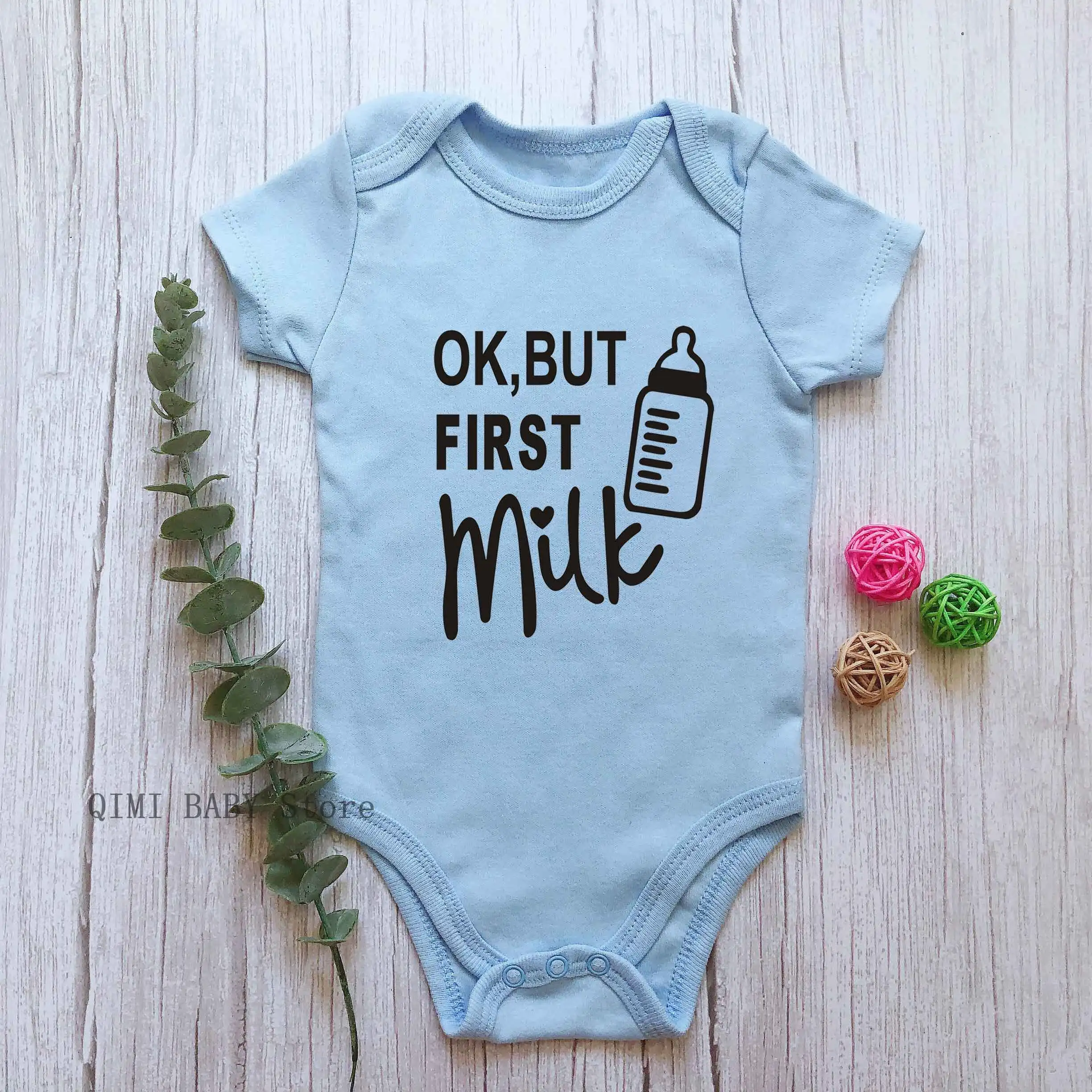Детский комбинезон Ok But First Milk с коротким рукавом, одежда с надписью для маленьких мальчиков и девочек 0-24 месяцев