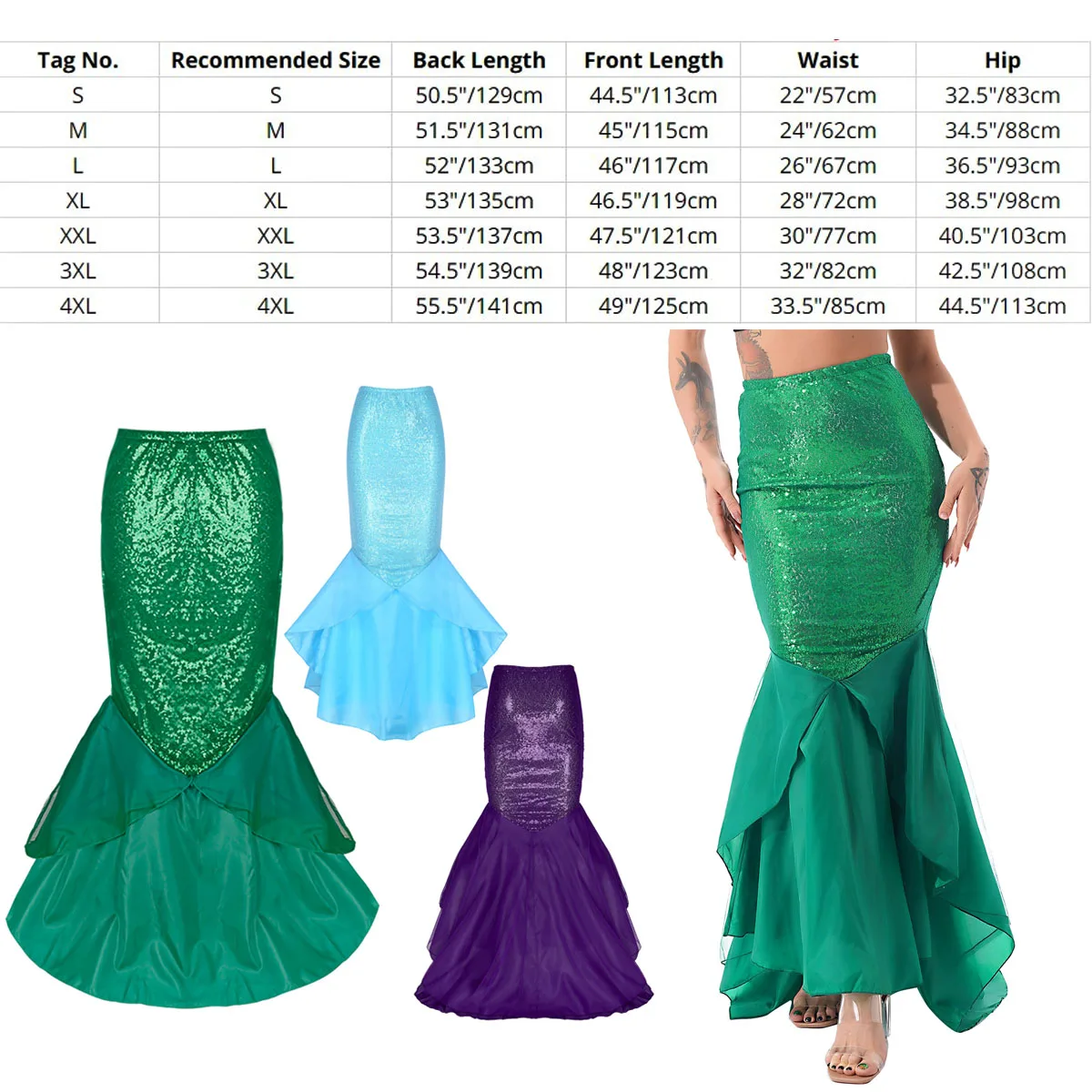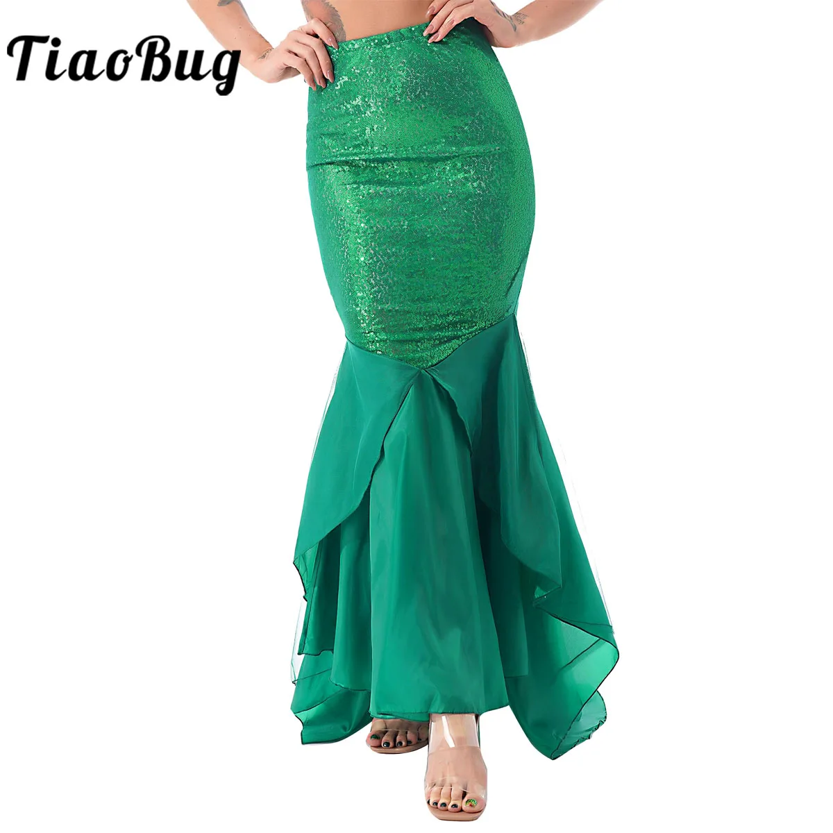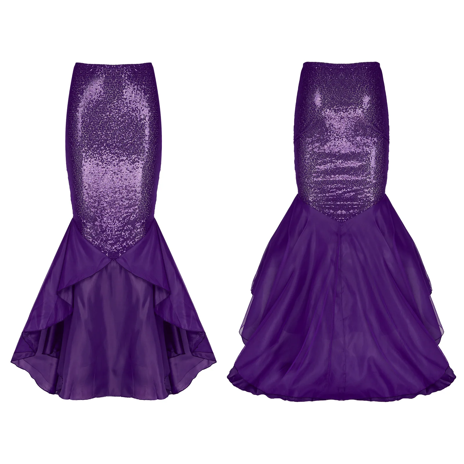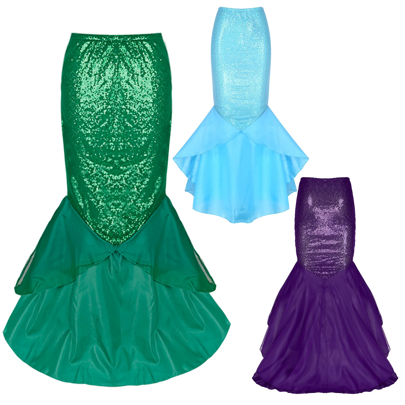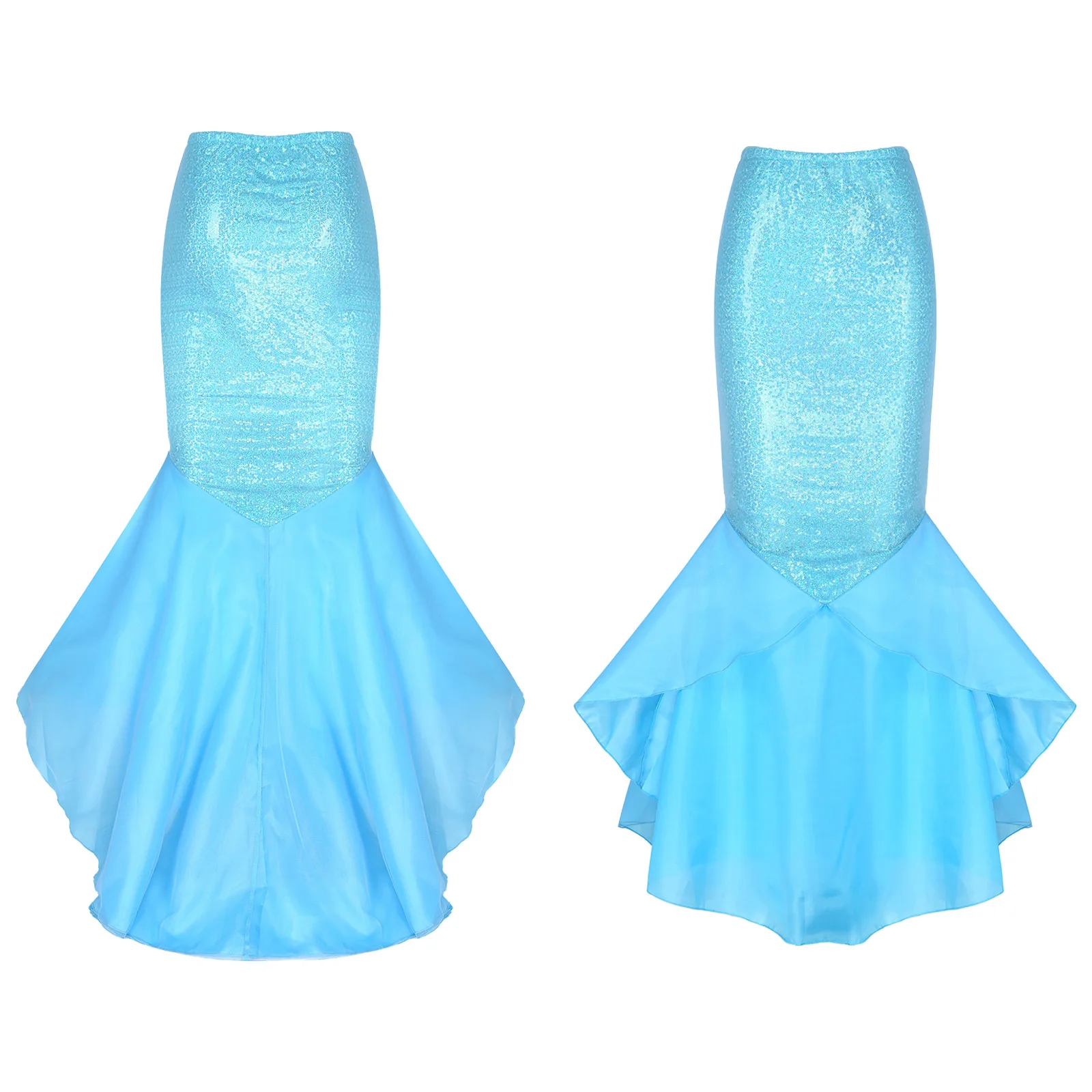 Особенности:Женская юбка русалки с блестками.Изготовлено из полиэстера и сетчатого материала; Блестящая юбка; Костюм.Эластичный пояс с боковой молнией.3 слоя хвоста, 1 сетчатый слой, 1 атласный слой и 1 подкладка с сеткой для дополнительной полноты.Отлично подходит для вечерние, день рождения, фотографии или другие особые случаи.